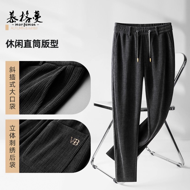 羊毛 弹力休闲长裤 蚕丝 2025秋冬加绒加厚防风裤 天丝 五只白鹅