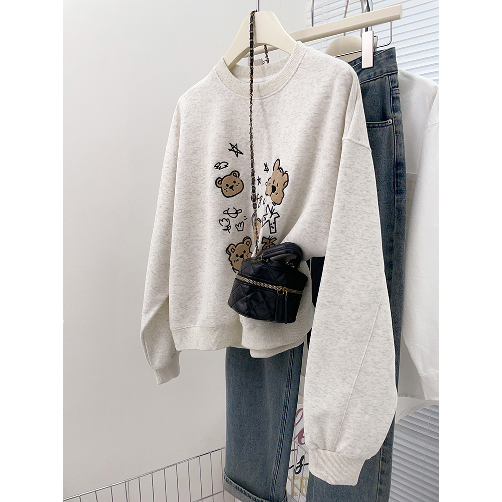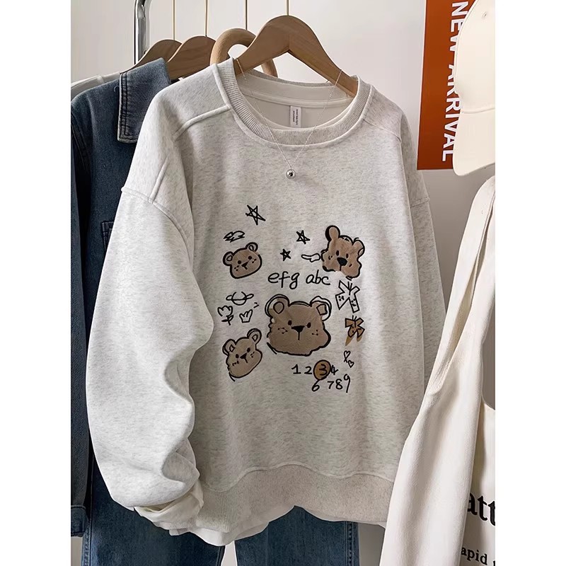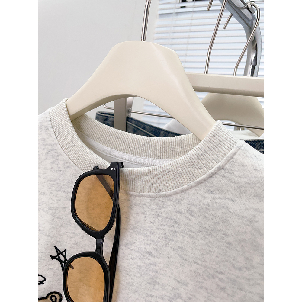 小个子加绒上衣服外套 大码 秋冬新款 宽松oversize胖mm刺绣卫衣女款