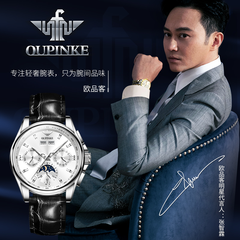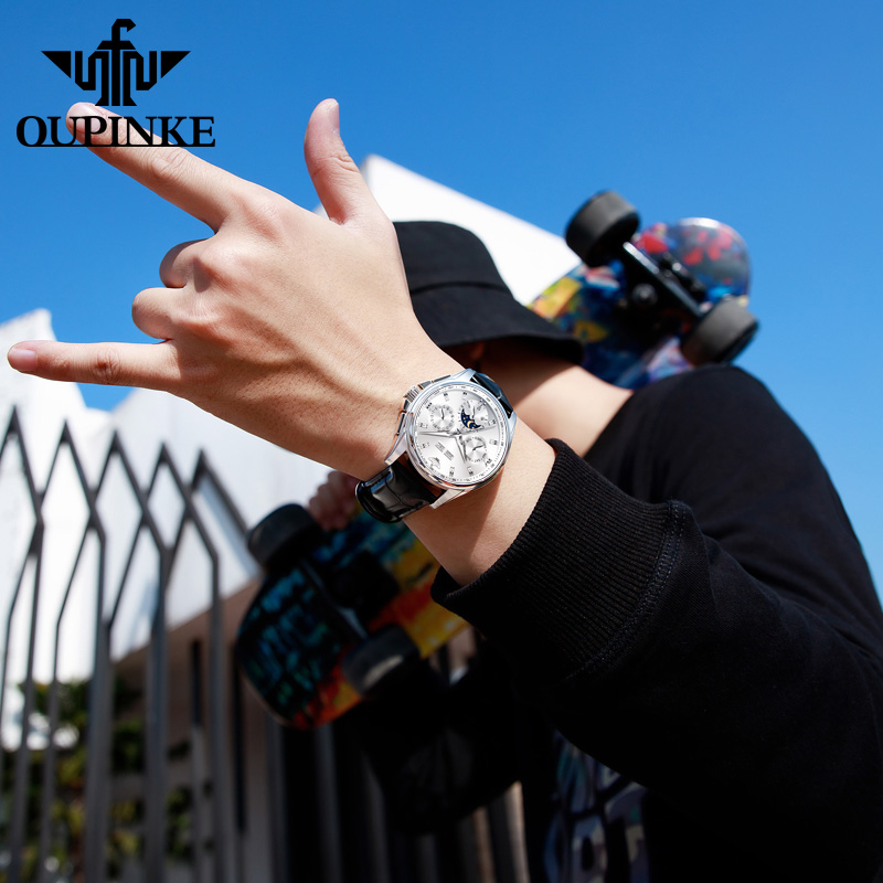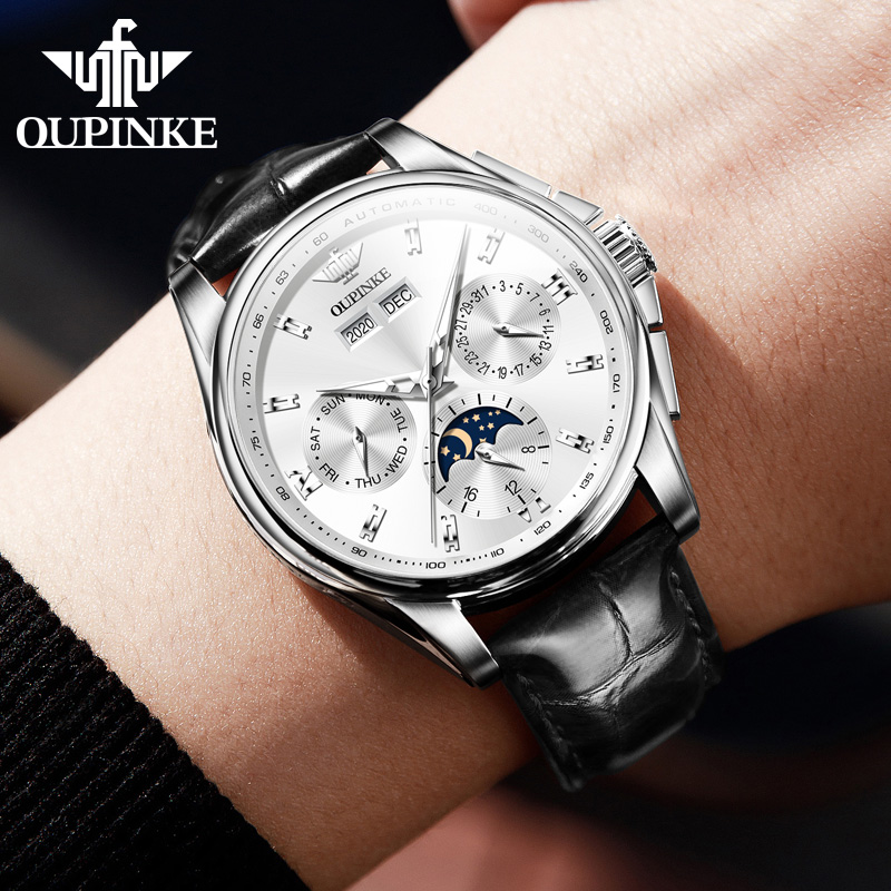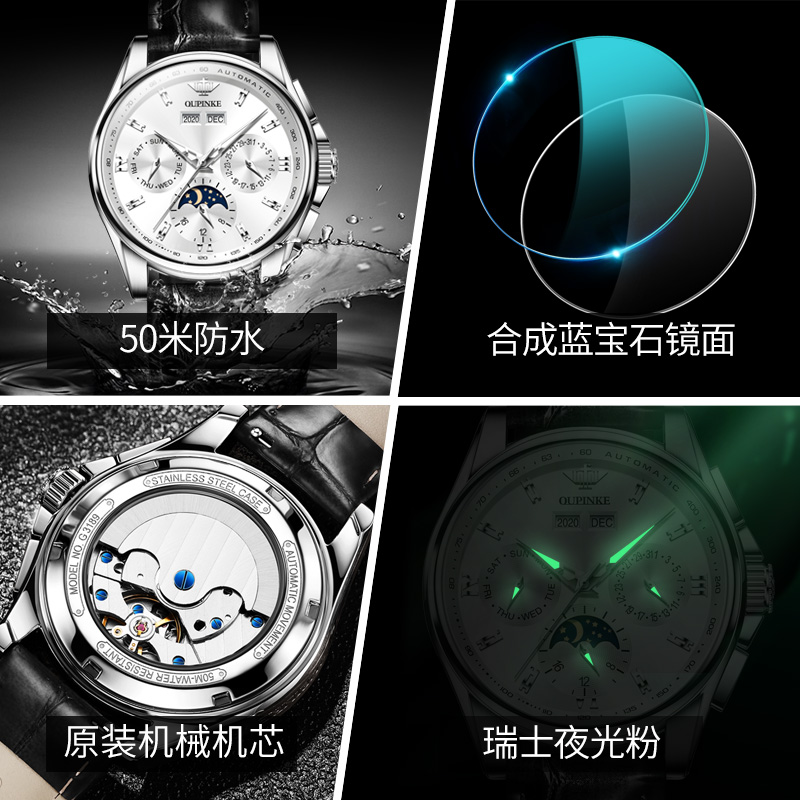 3189 机械表全自动潮流男款 瑞士欧品客品牌正品 月相多功能手表男士