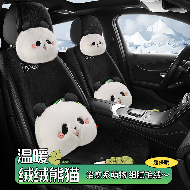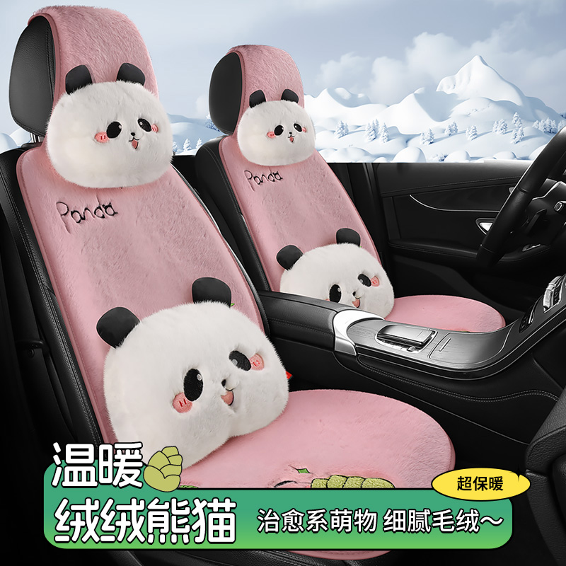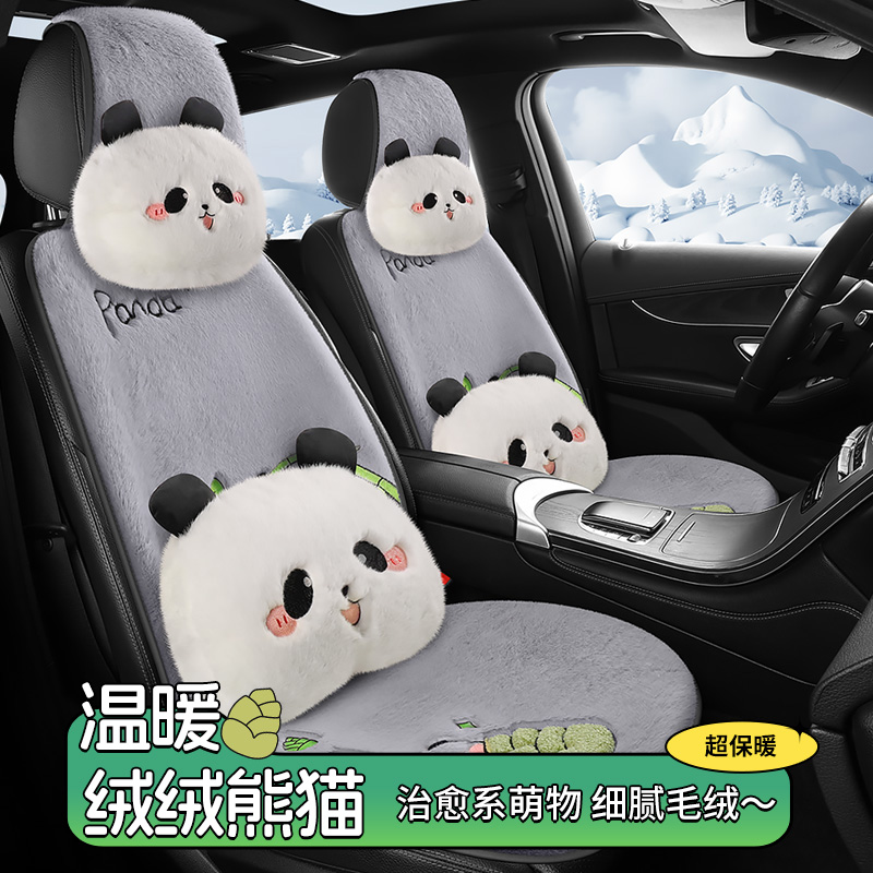 权豹冬季 水貂毛绒汽车坐垫女神卡通保暖座垫防滑绣花熊猫座套迈腾