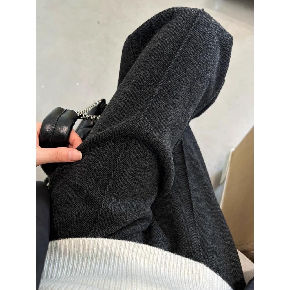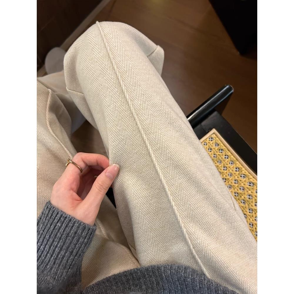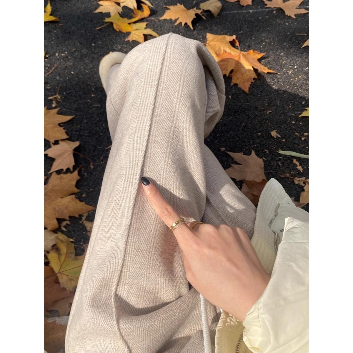 胖mm高腰显瘦垂感人字纹毛呢直筒裤 窄版 大码 女2025秋冬新款 阔腿裤