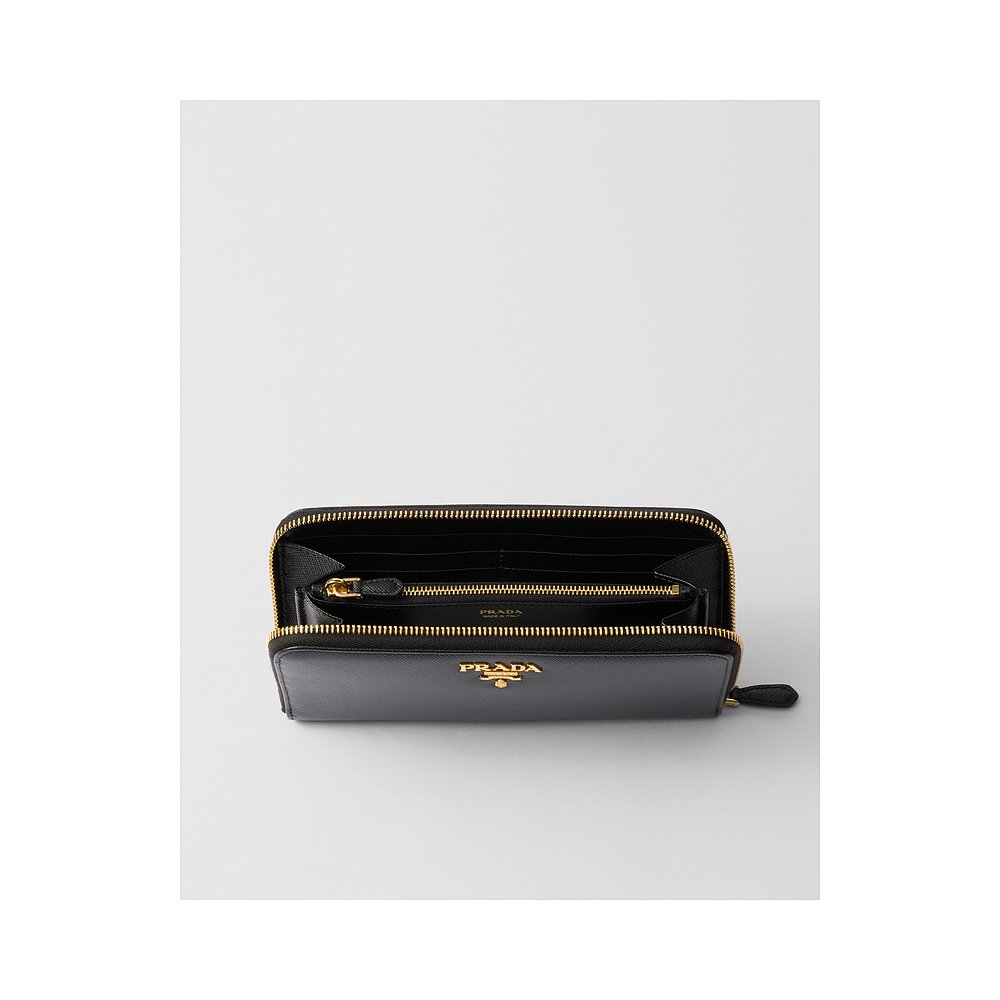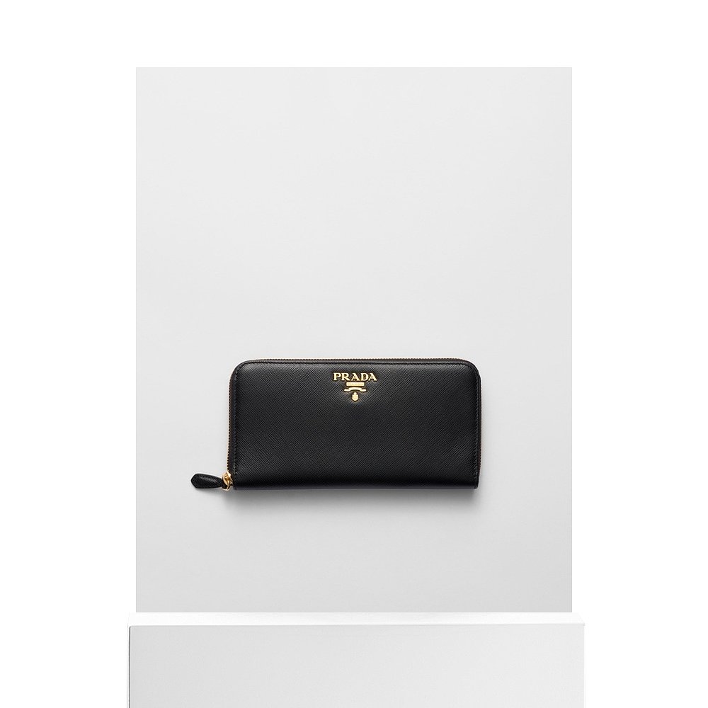 自营欧洲直邮Prada普拉达 钱包 女士黑色小牛皮拉链闭合长款