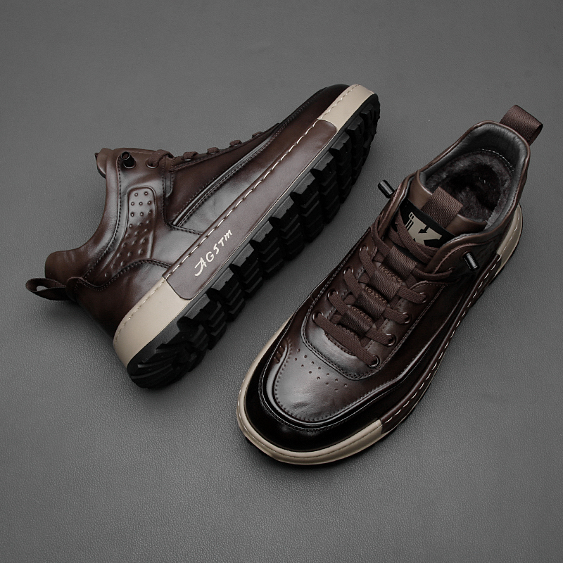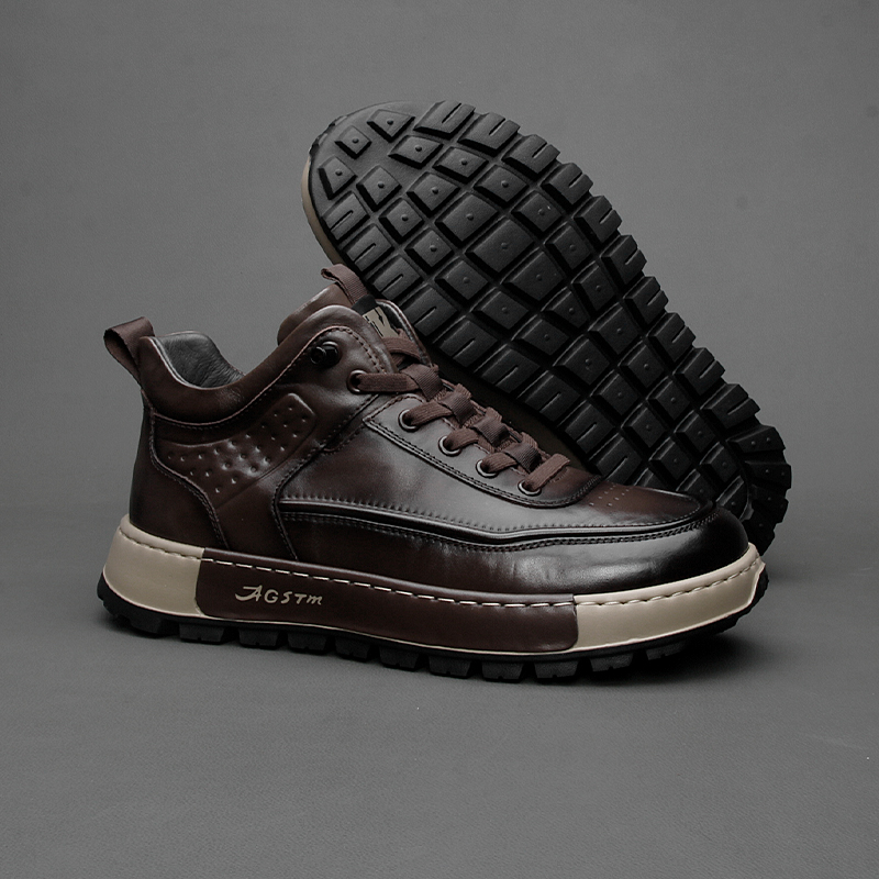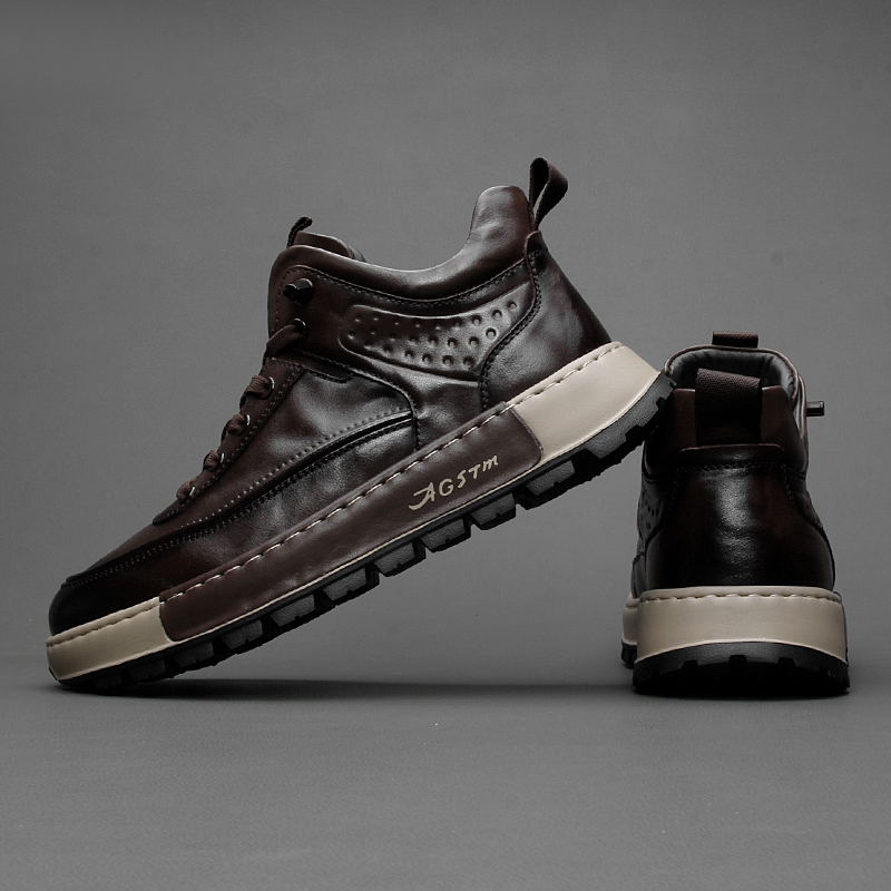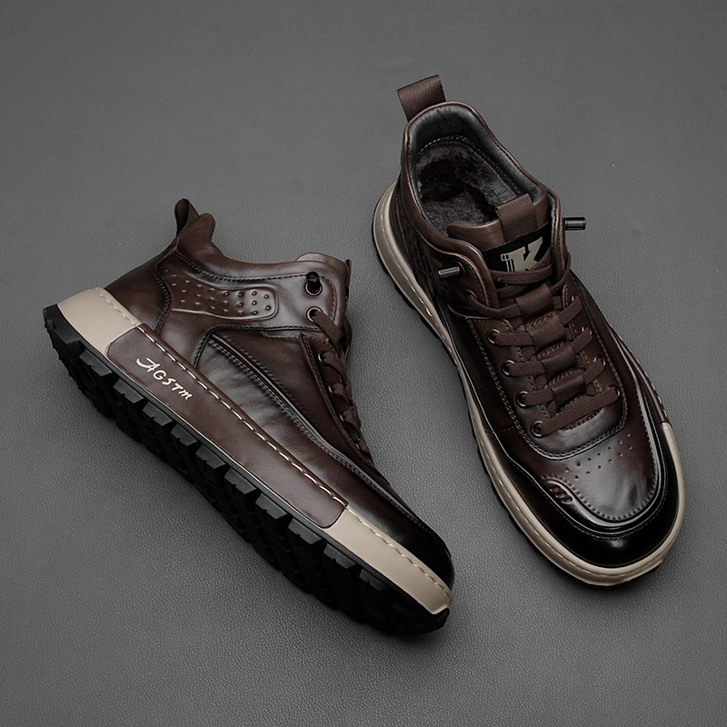 运动鞋 高帮休闲鞋 秋冬新款 子学生厚底男鞋 皮面鞋 征服鸿星尔克板鞋