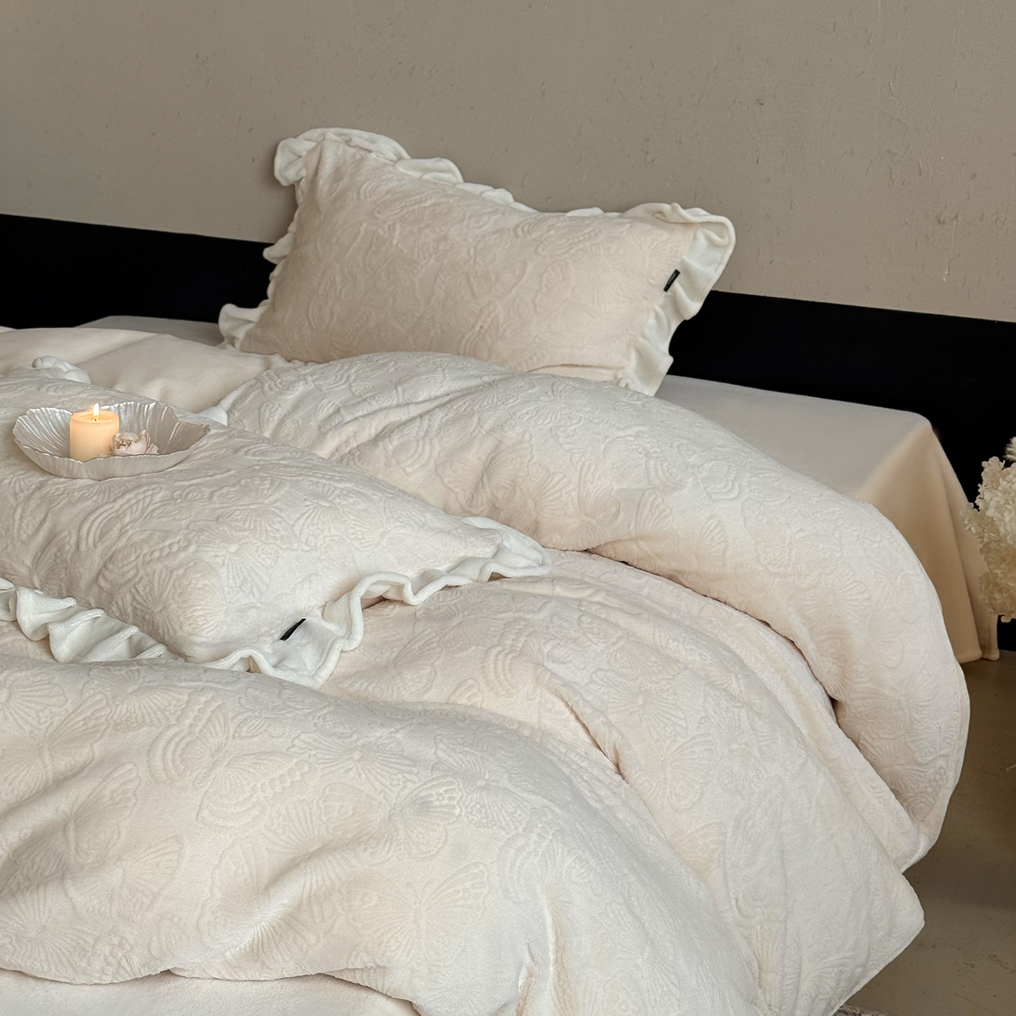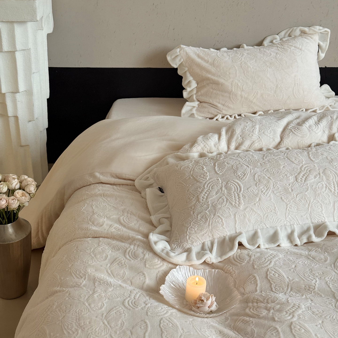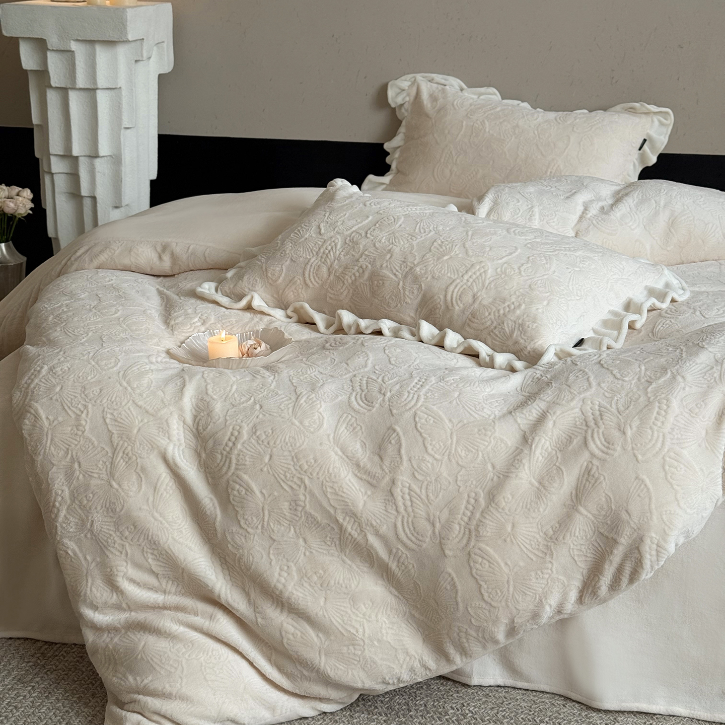 床品 保暖加厚床上四件套公主风被套枕套秋冬季 韩式 牛奶绒花边款