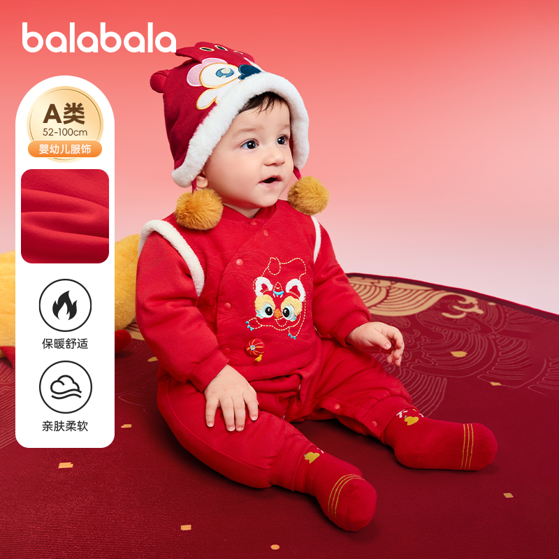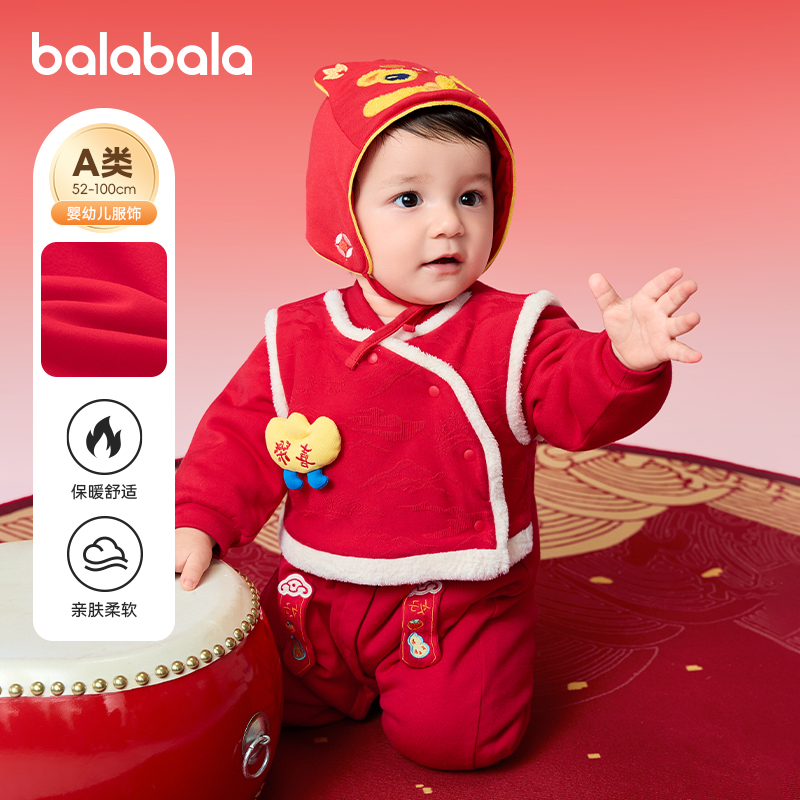 年服中国风童装 巴拉巴拉宝宝内着婴儿连体衣夹棉套装 2025秋冬新款