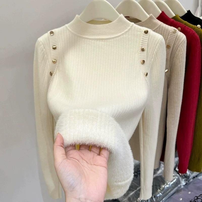 白色上衣A 加厚显瘦内搭打底衫 都市丽人半高领毛衣女秋季 2025新款