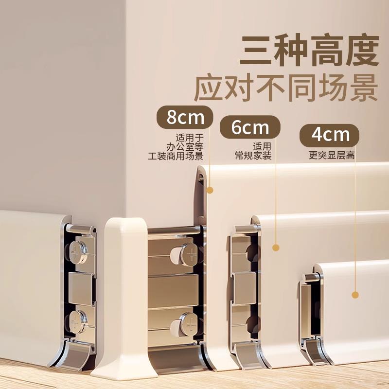 奶油风铝合金踢脚线6cm金属不锈钢新型卡扣地脚线极简超薄贴脚线