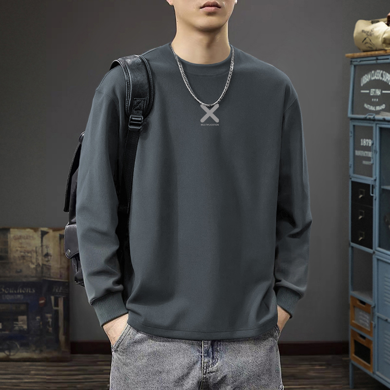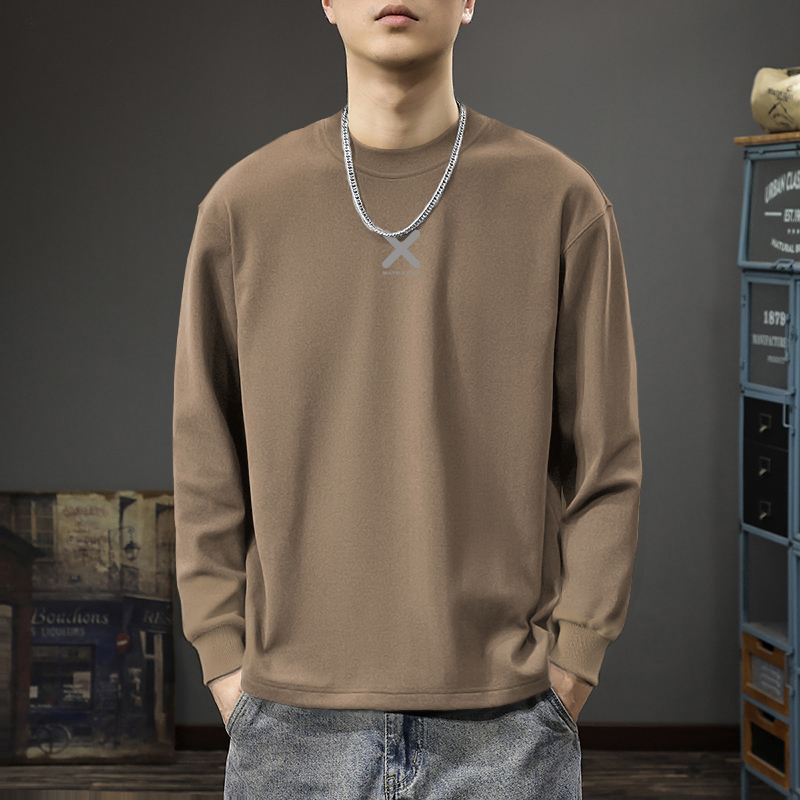 加厚保暖长袖 秋冬季 t恤男 潮牌重磅260克双面德绒打底衫 简木迹美式