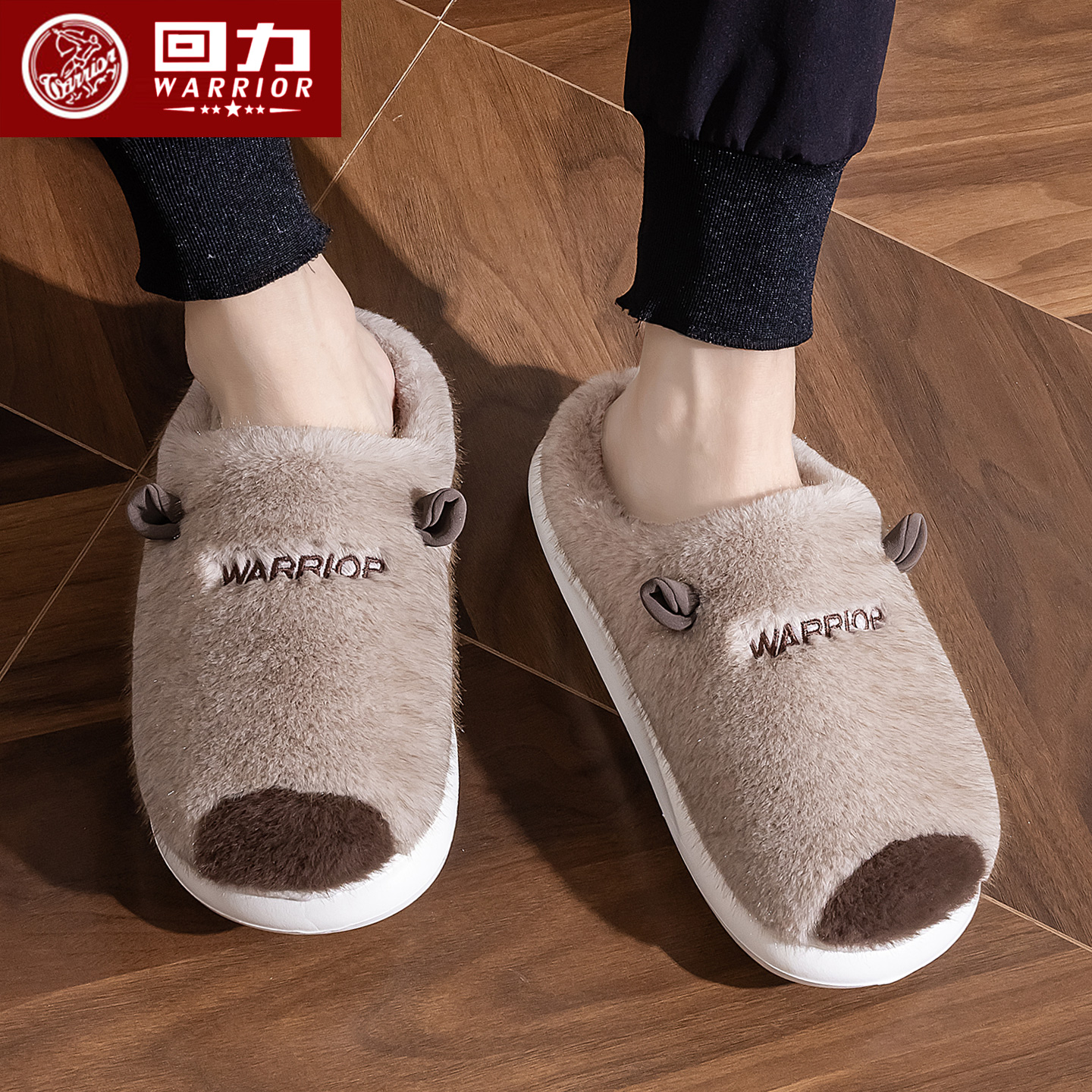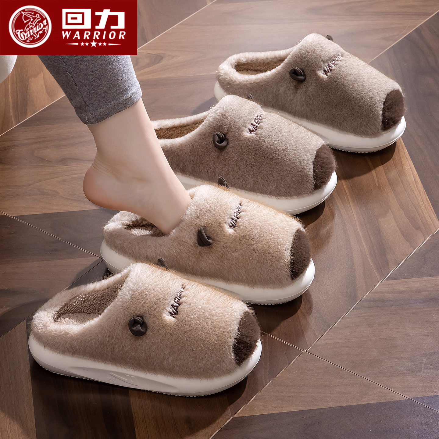 毛绒月子拖鞋 秋冬季 女 男室内家居2025新款 回力卡皮巴拉大童棉拖鞋