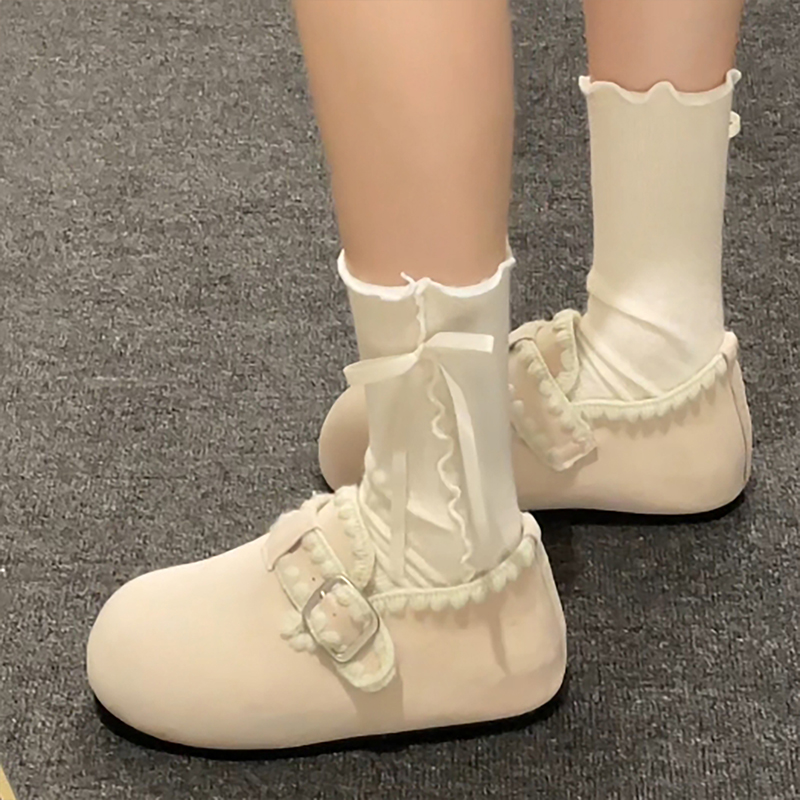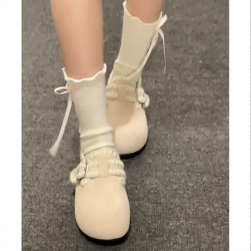 配裙子软底百搭单鞋 秋季 女2025新款 白色复古内增高厚底全包勃肯鞋