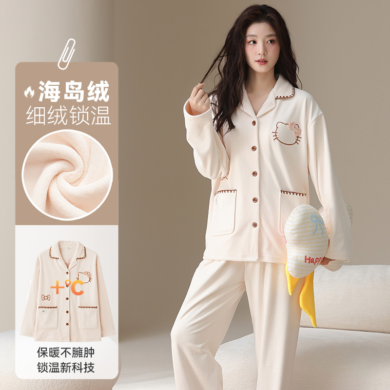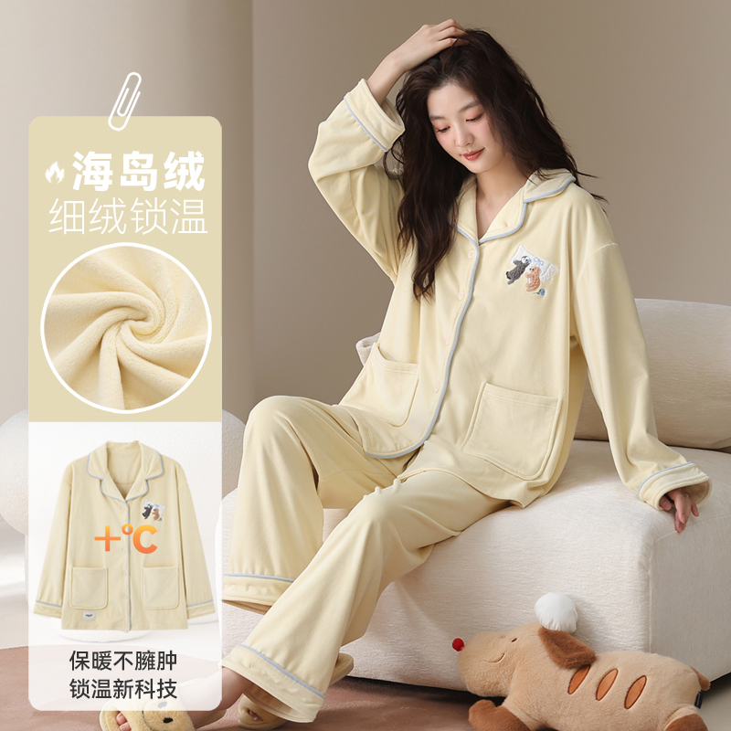 2025新款 保暖家居服秋冬款 冬季 帕兰朵加厚珊瑚绒海岛绒睡衣女款
