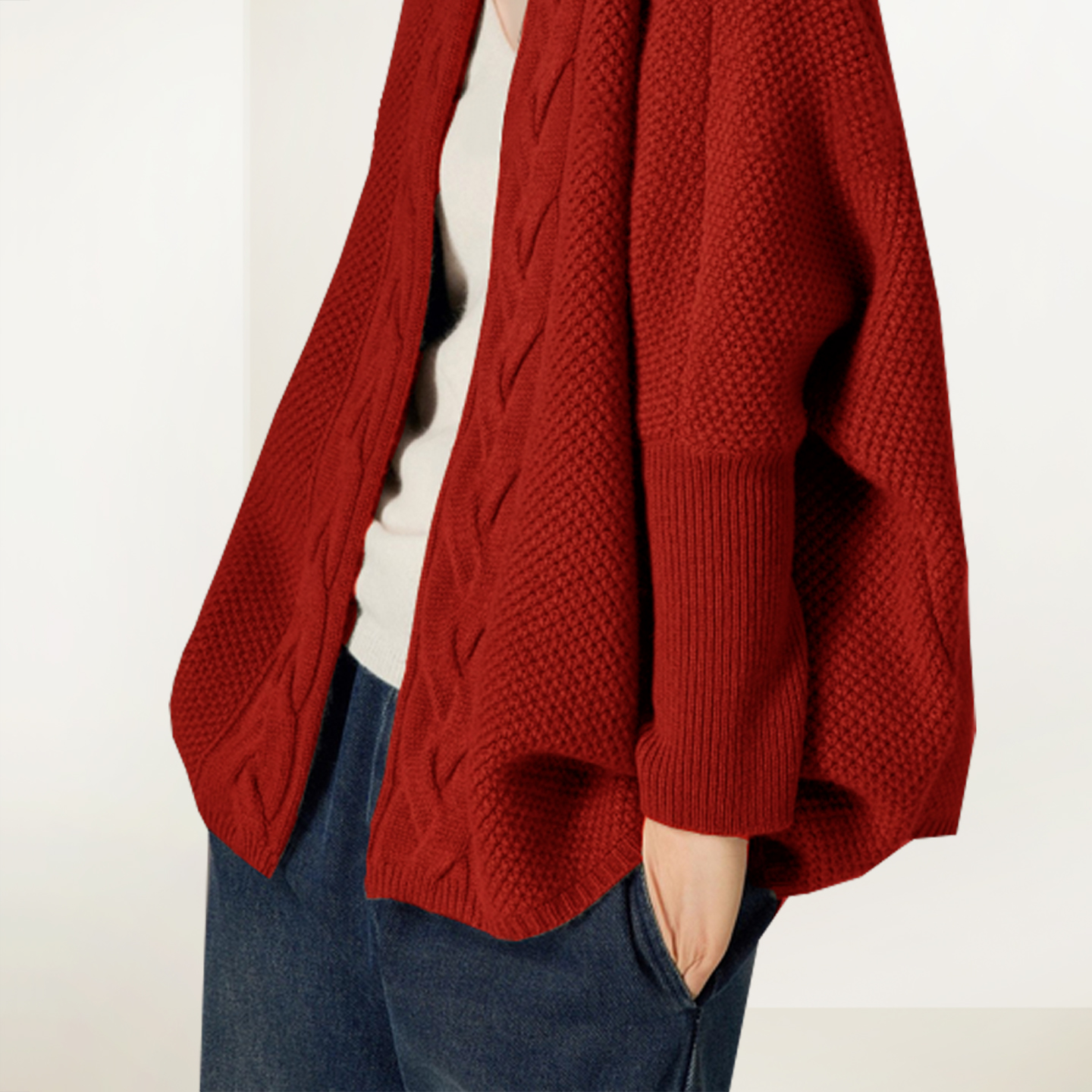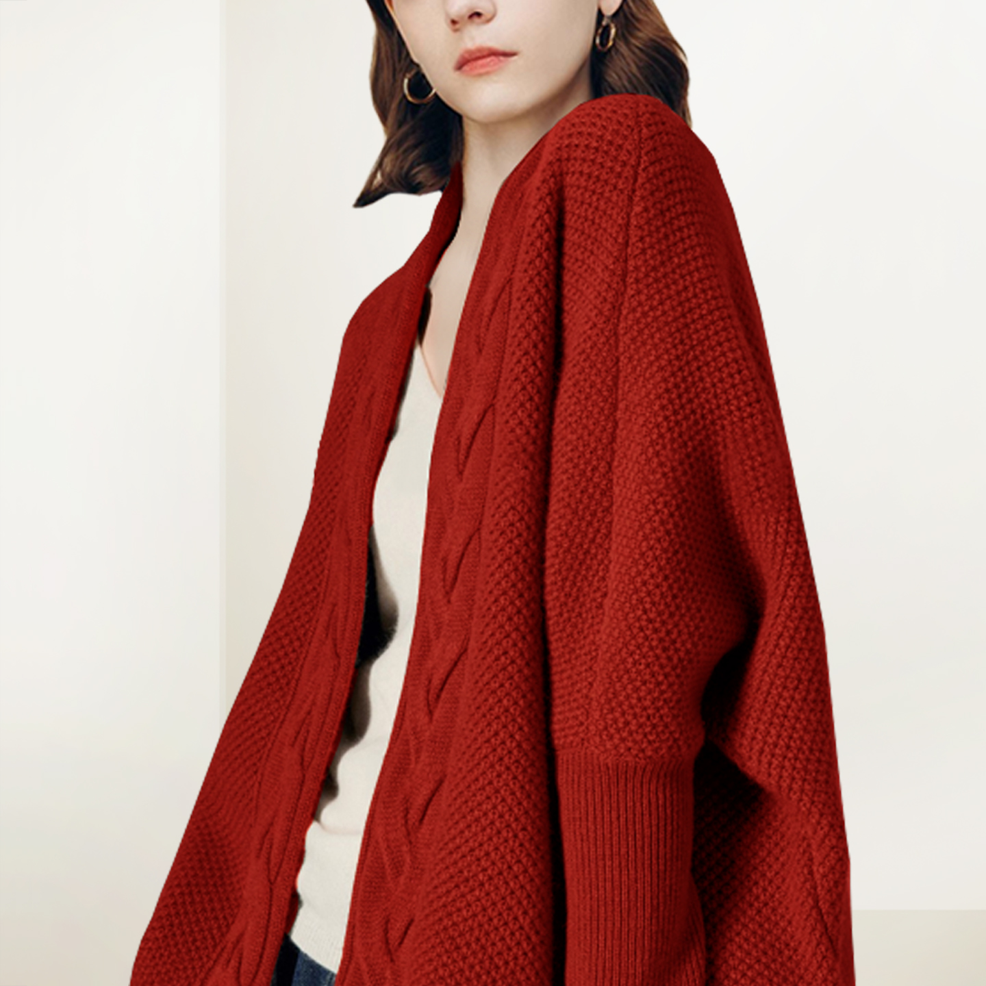 QOOEL复古V领扭花加厚毛衣外套女2025秋冬新款 潮 宽松洋气针织开衫