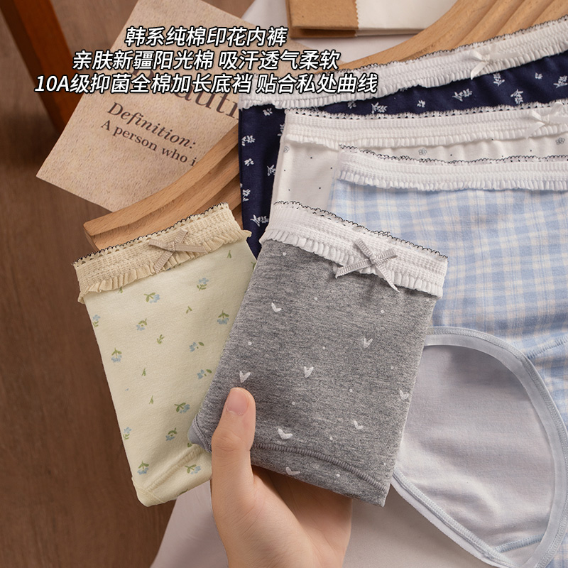 头 三角短裤 内裤 女生纯棉抗菌100全棉无痕中腰透气少女生2023新款