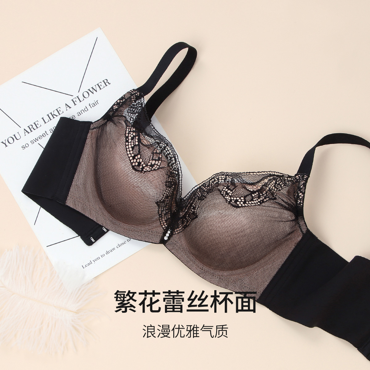 茜施尔新款 性感蕾丝大胸显小有钢圈聚拢内衣收副乳防下垂棉里杯S