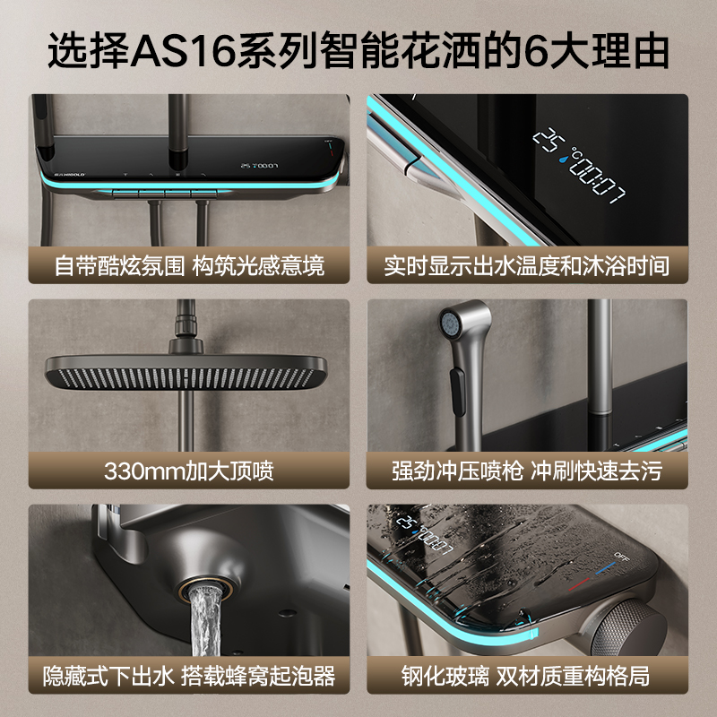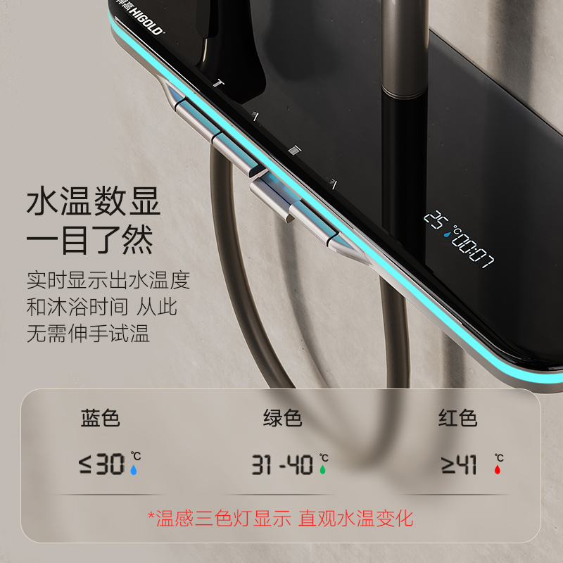 淋浴套装 悍高卫浴花洒套装 四功能数显花洒浴室枪灰色家用明装