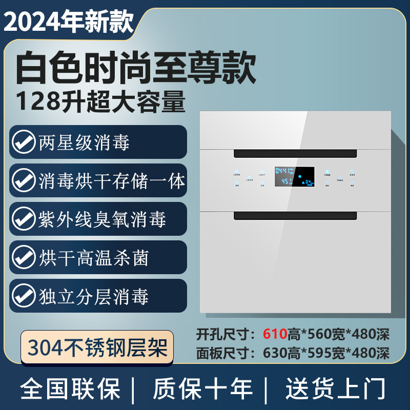 新款 紫外线128L升三层厨房餐具碗筷消毒碗柜 樱花消毒柜家用嵌入式