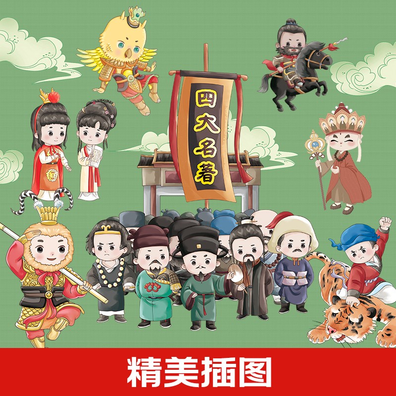 漫画四大名著1000问正版 书籍全套4册中小学生必背文学常识名著考点提炼漫画解读西游记水浒传三国演义红楼梦青少年课外阅读书籍