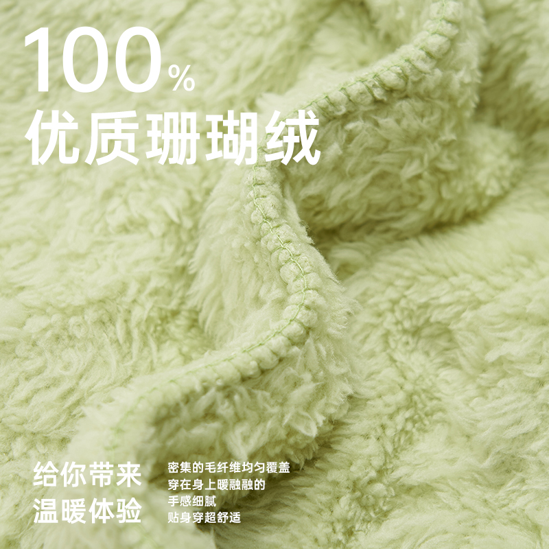 雅鹿珊瑚绒女睡衣冬季 加绒加厚保暖甜美可爱绿色法兰绒家居服新款