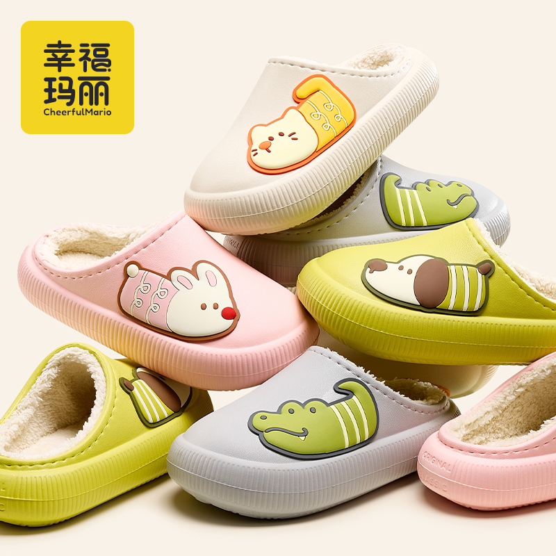 室内防水男孩小朋友宝宝毛绒保暖棉鞋 新款 男童女童冬季 儿童棉拖鞋