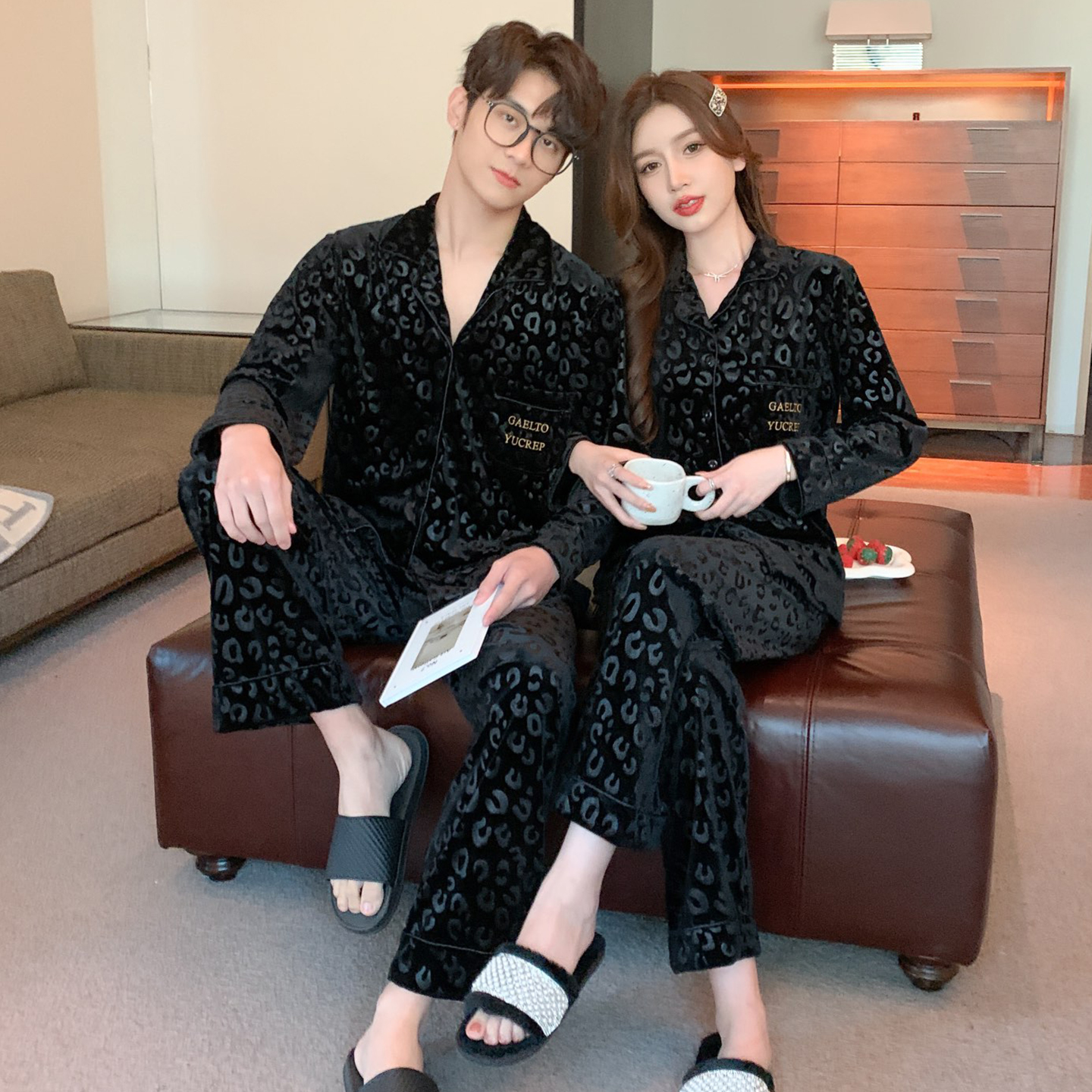 秋冬季 2025新款 猫人半边绒家居服套装 男女睡衣可外穿 肖战同款