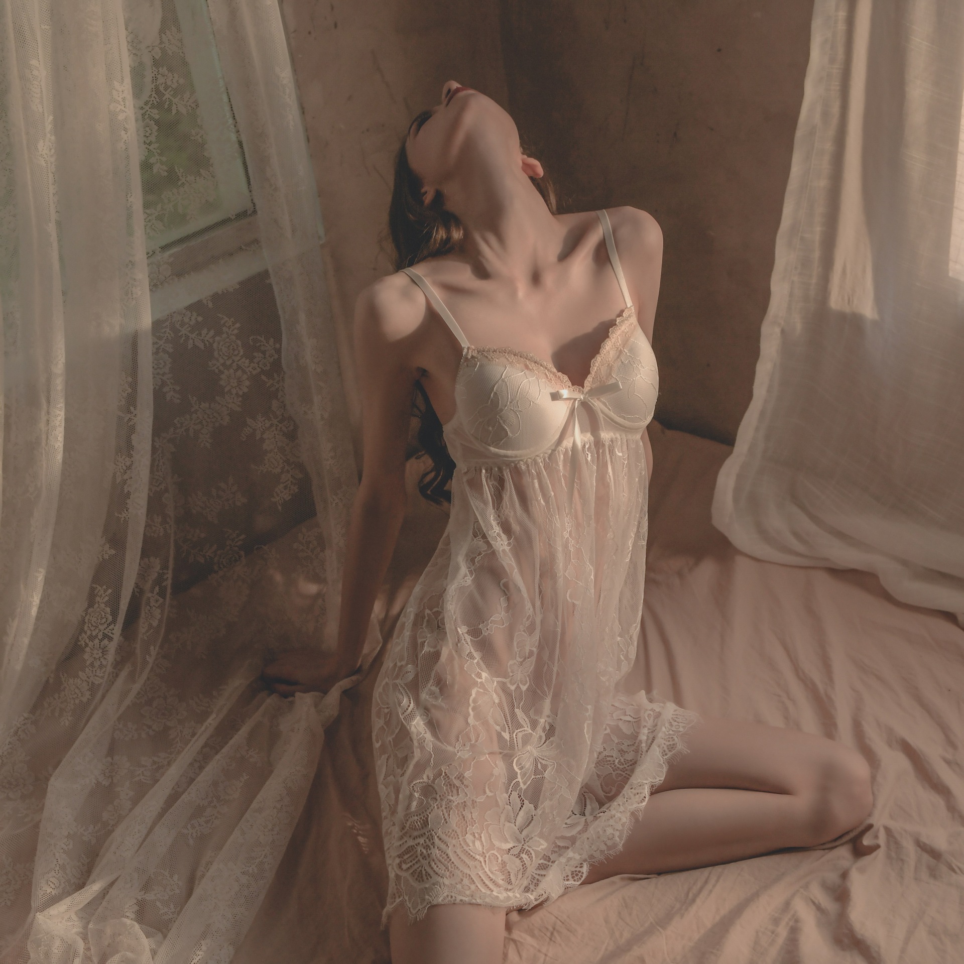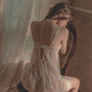 2025新款 性感冰丝睡袍纯欲风高级感蕾丝吊带睡衣 睡裙女春秋夏薄款