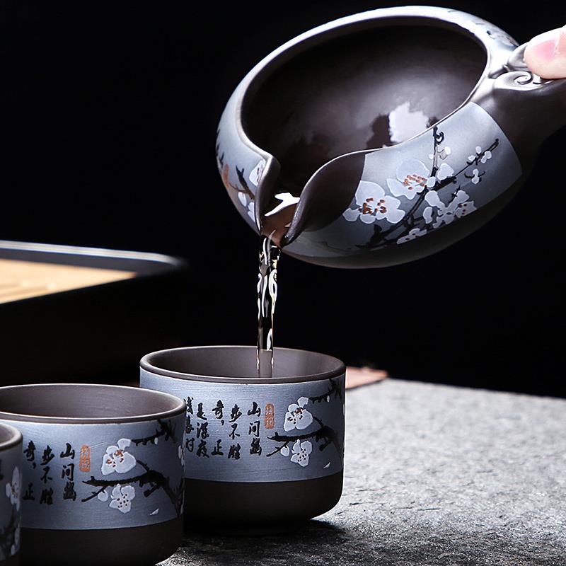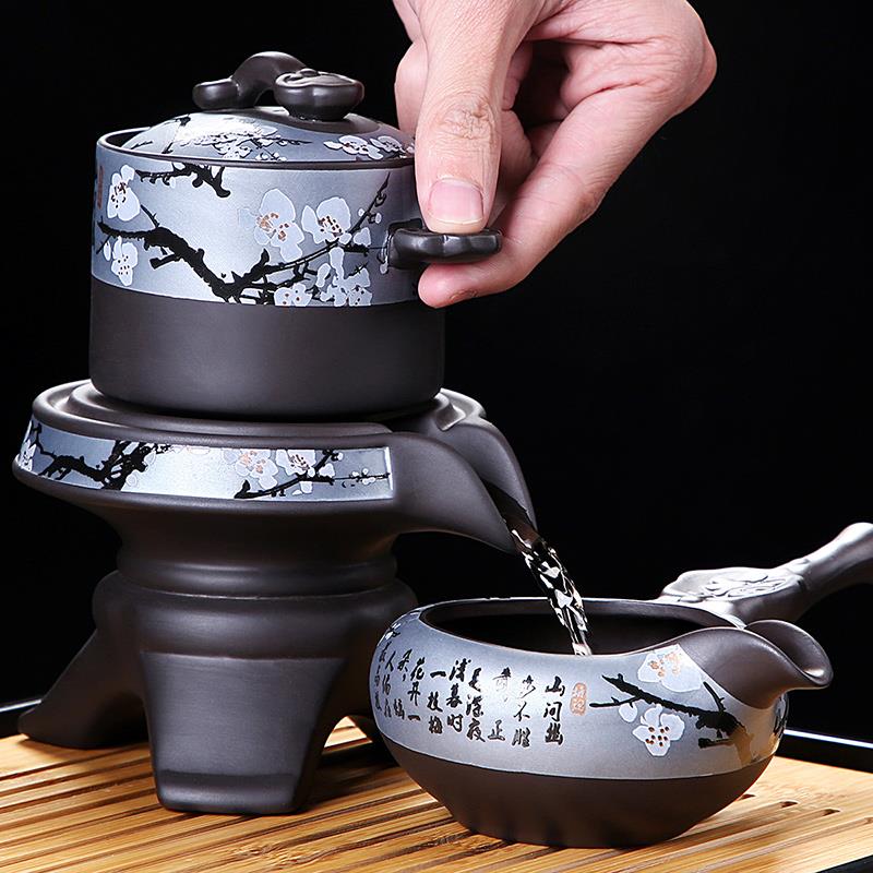 懒人茶具套装 家用喝茶防烫泡茶壶陶瓷功夫茶杯石磨半自动冲茶神器