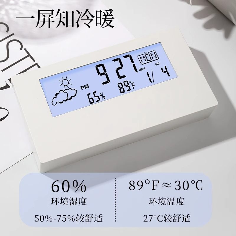 LED静音智能天气电子钟表ins桌面时钟万年历台式 透明学生用小闹钟