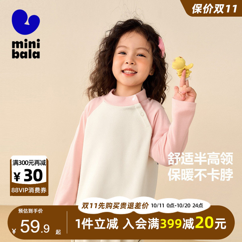 宝宝发热抑菌保暖半高领打底衫 迷你巴拉巴拉男童长袖 T恤2025秋季