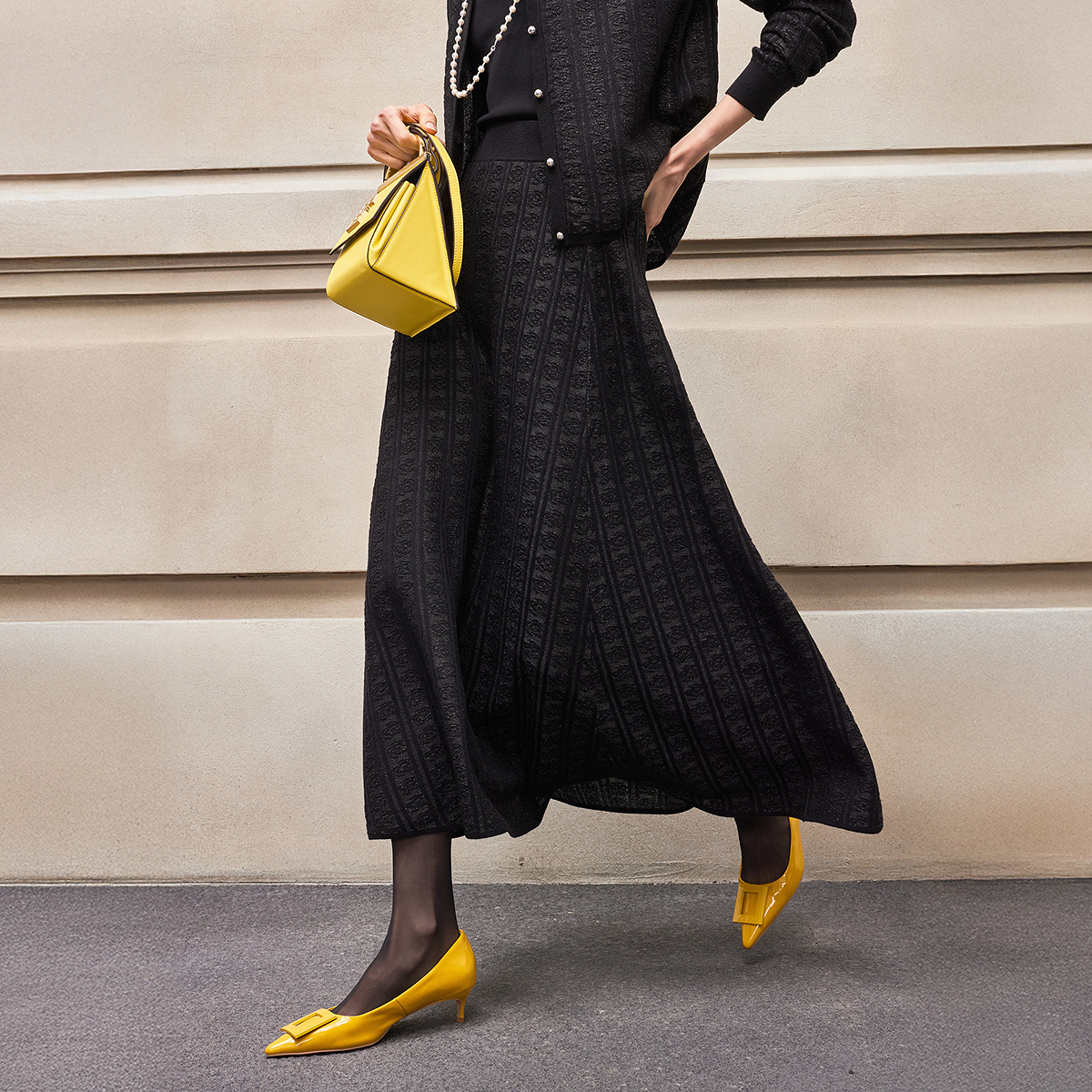 Juicy 珠光粉色中长裙子 Couture橘滋半身裙女2025年秋冬新款