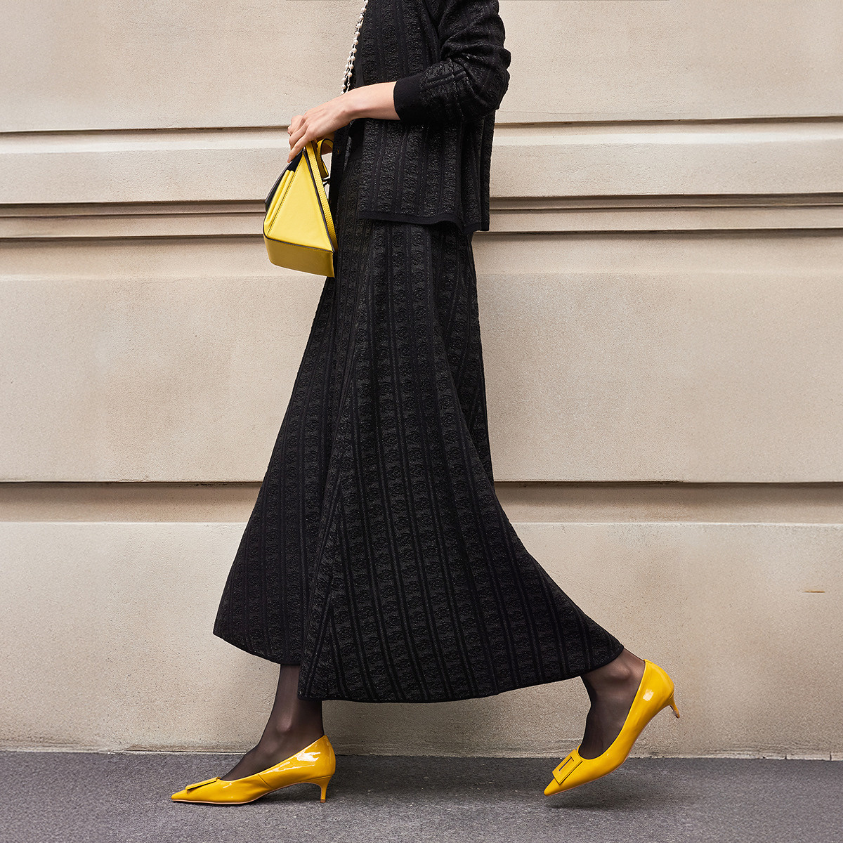 歌莉娅针织抓绒半身裙女秋冬流行穿搭高腰黑色包臀裙子1BSJ2D020
