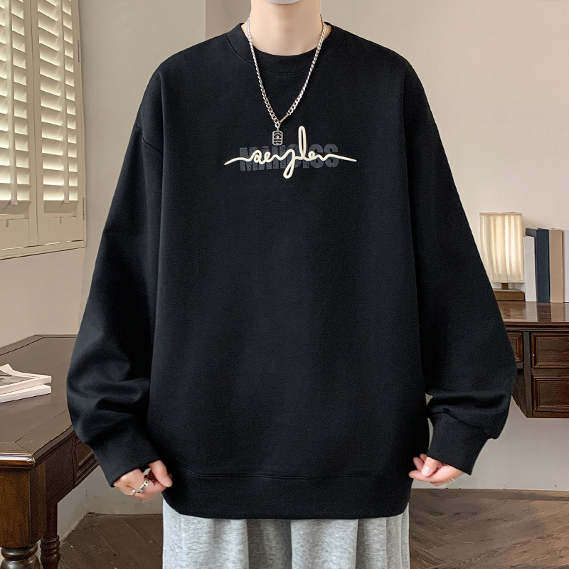 海澜之家山不在高卫衣春秋新圆领珠地小标宽松上衣男 加绒可选