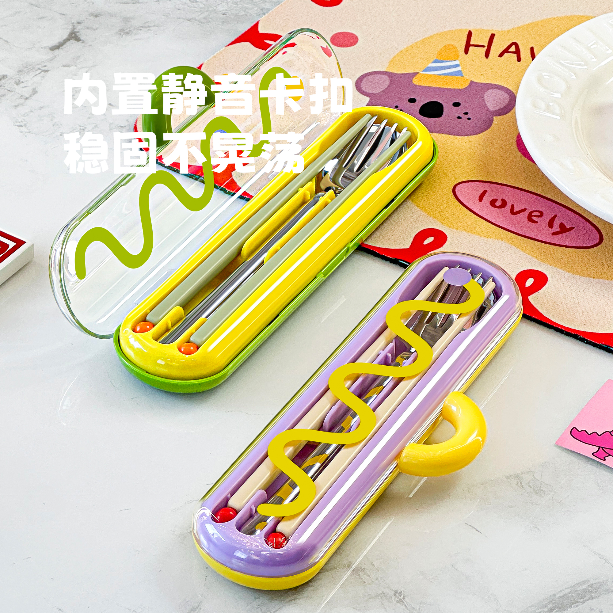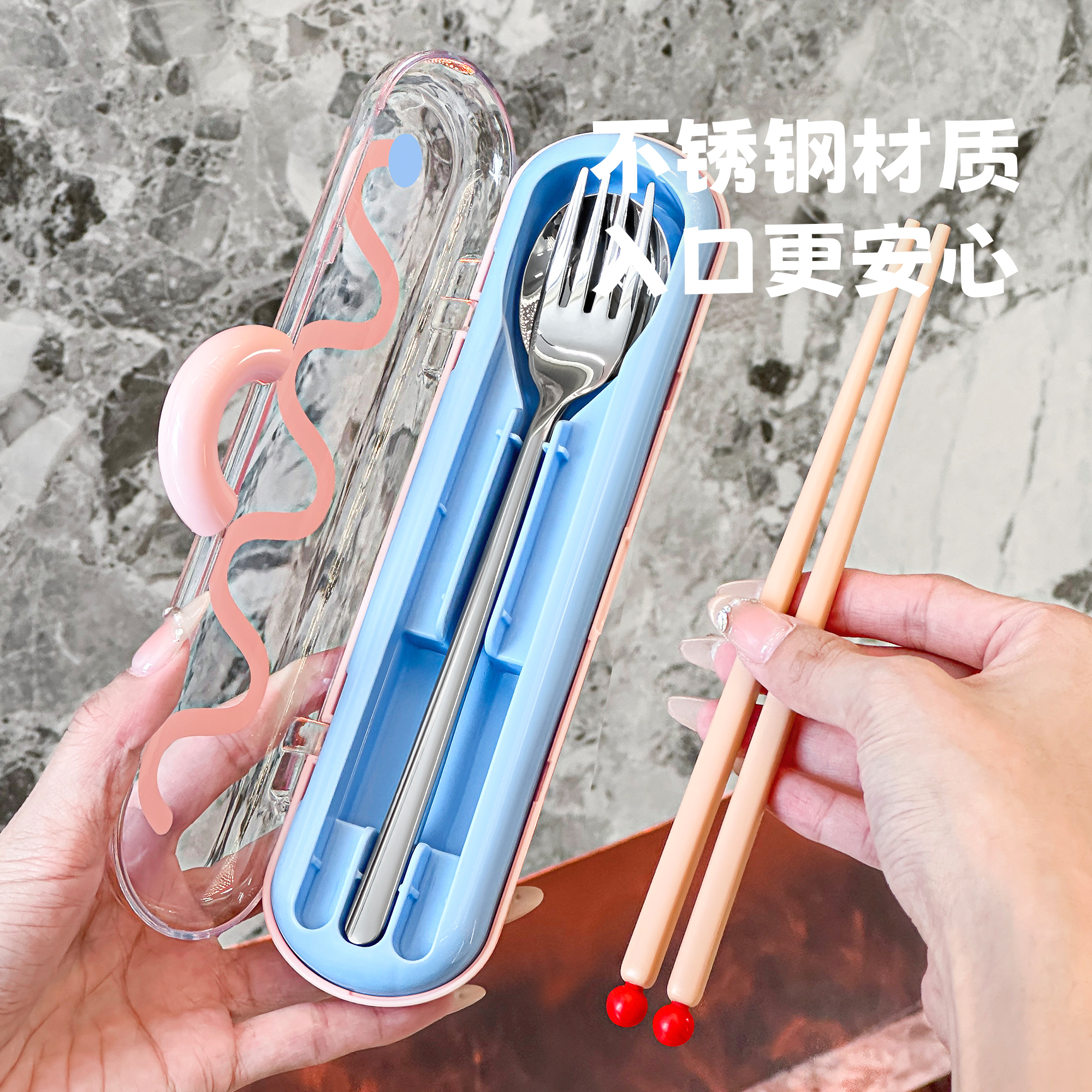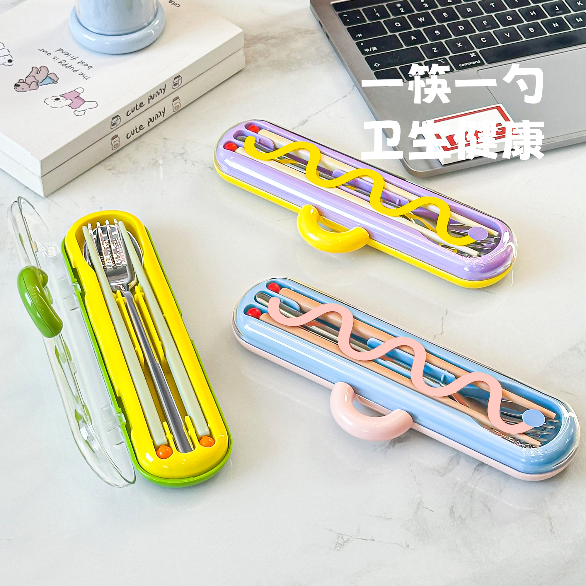三件套不锈钢筷子勺子套装 便携餐具盒上班族小学生一人用收纳盒