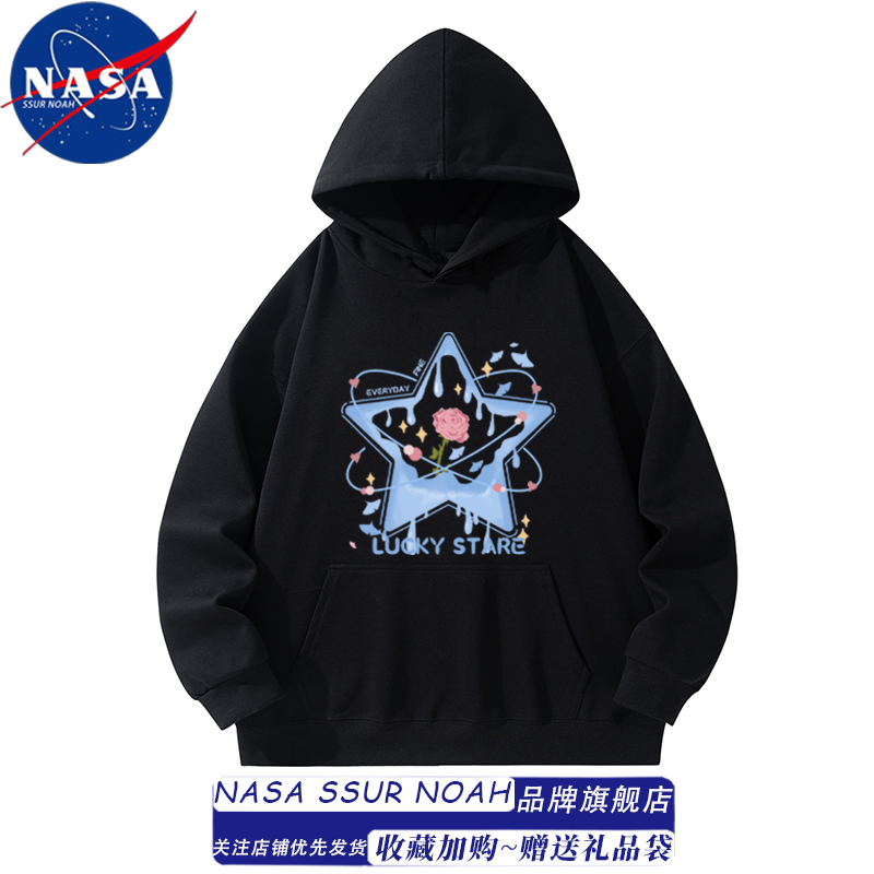 NASA联名玫瑰星星卫衣男女春秋季 连帽上衣情侣外套张杰演唱会穿搭