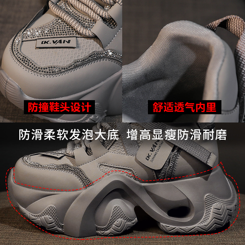 子 厚底增高休闲情侣透气运动鞋 骆驼银月户外复古老爹鞋 女2025新款