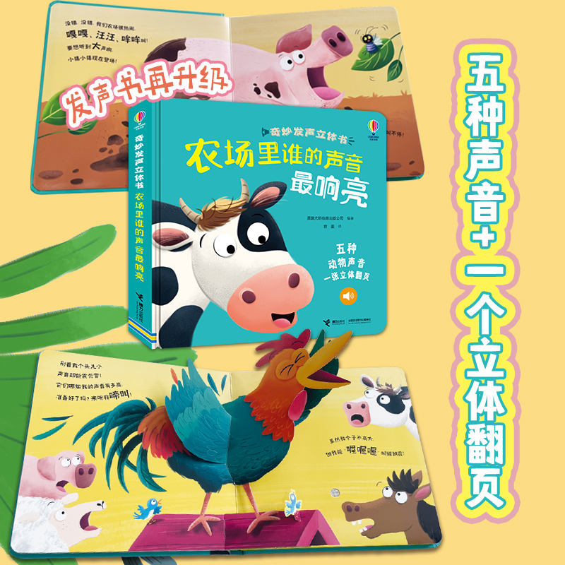 声音最响亮0 农场动物园里谁 尤斯伯恩奇妙发声立体书 3岁儿童启蒙认知玩具书早教立体翻翻绘本宝宝点读有声读物正版 新华文轩