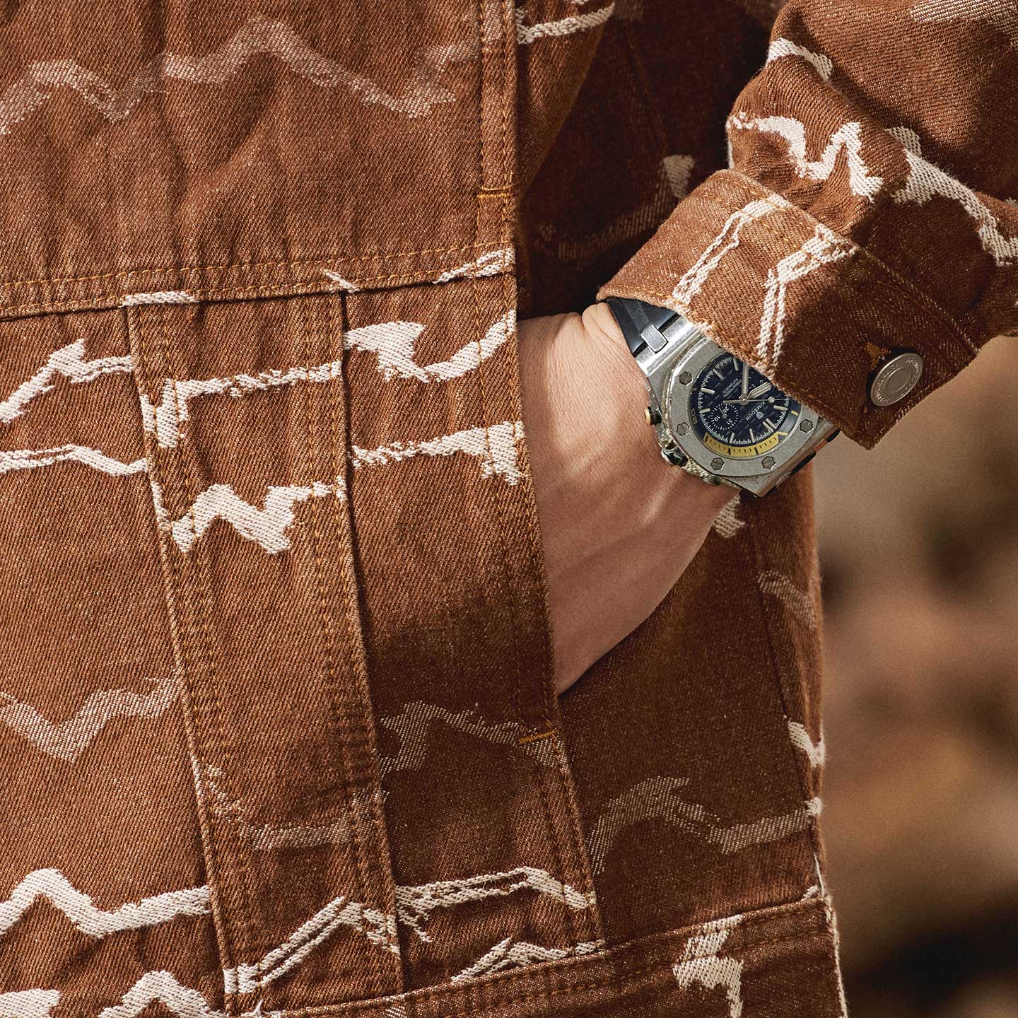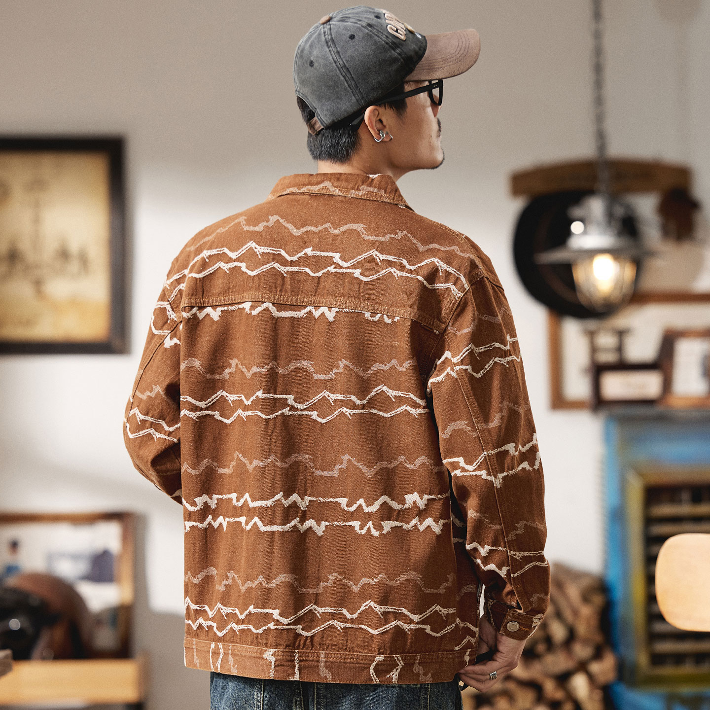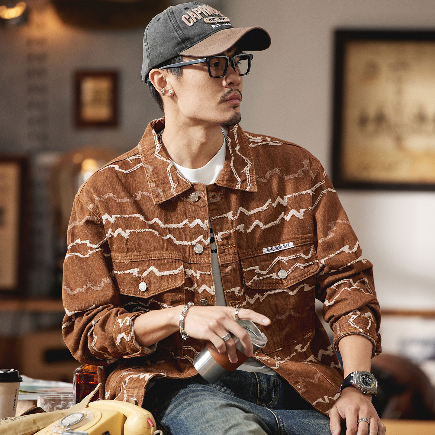 男士 宽松休闲夹克春秋款 上衣 棕色提花牛仔外套男潮牌工装 2025秋季