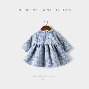 木本尚女童秋冬连衣裙2025新款 宝宝复古裙子气质英伦风娃娃领外套