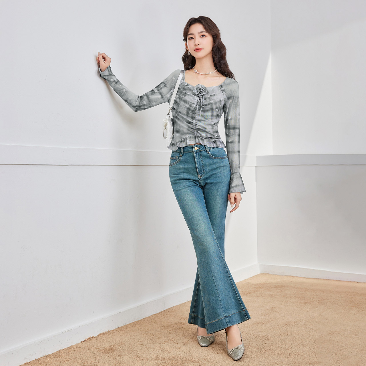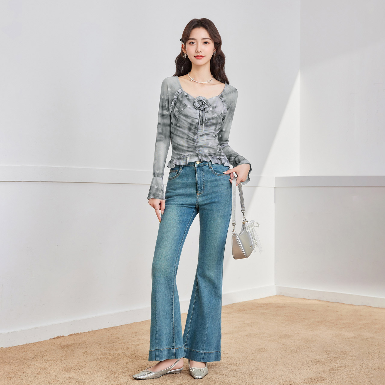 纯欲辣妹气质褶皱设计感修身 IEF 美式 新款 百搭上衣 爱依服2025秋季