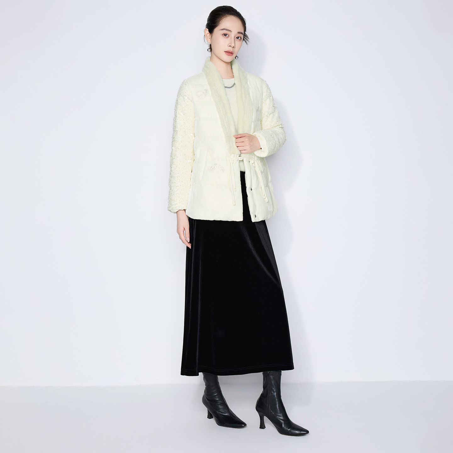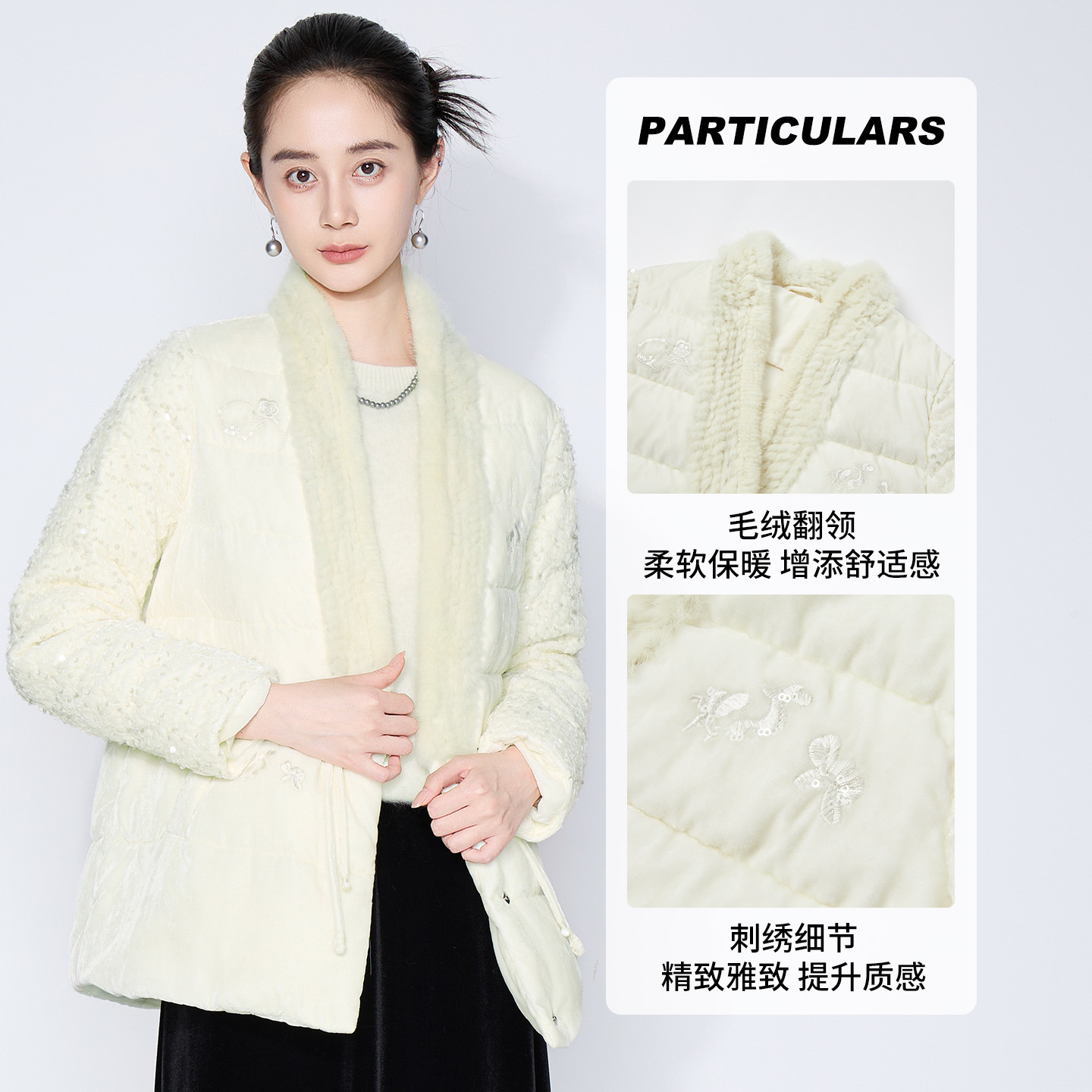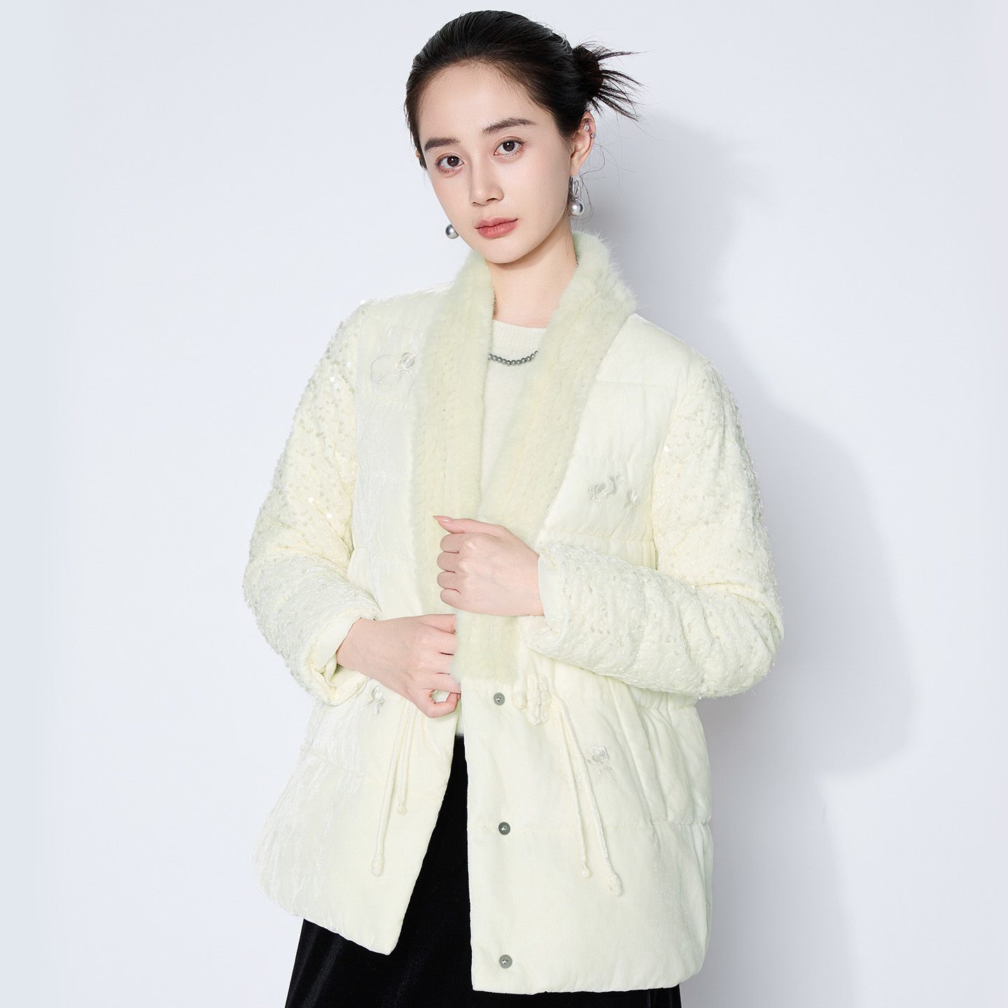 国风保暖时尚 香草米水貂毛领绣花羽绒服新中式 新款 马天奴2025冬季