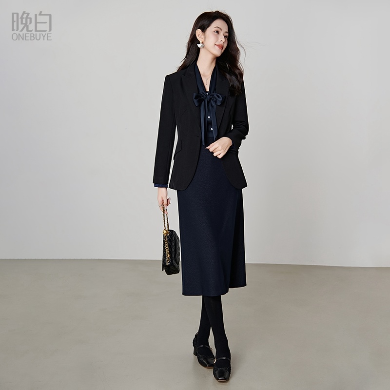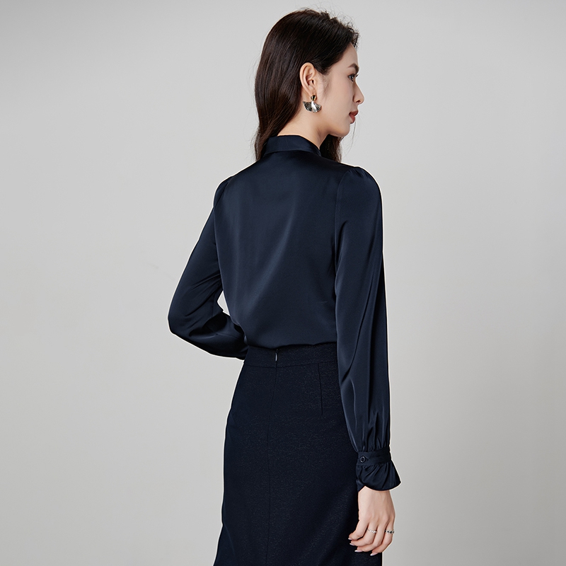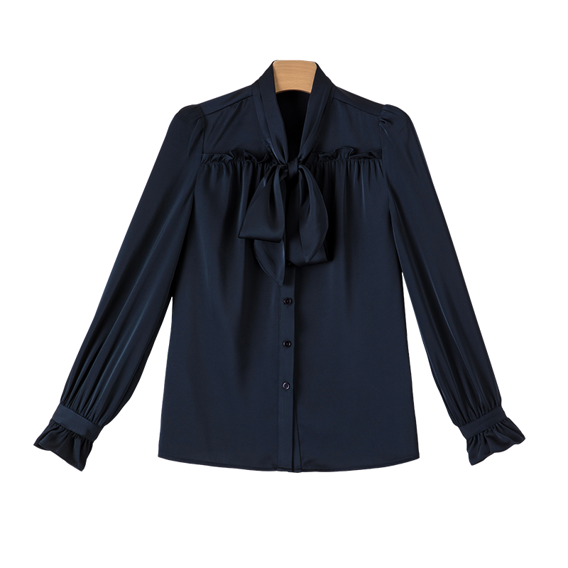 晚白2025年秋新款 女 纯色蝴蝶结系带领上衣气质优雅百搭衬衫