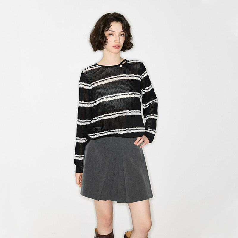女装 上衣套头2025春秋新款 宽松休闲条纹针织衫 Jamor加墨时尚