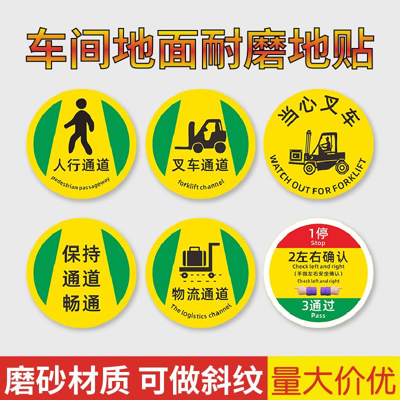 人行通道磨砂地贴标识牌工厂车间物流仓库警示牌当心叉车温馨提示告示牌请注意安全保持道路畅通防水贴纸定制