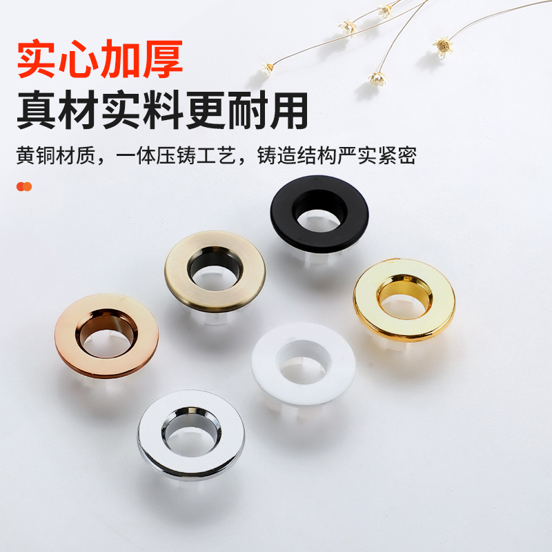 高档陶瓷洗手盆溢水口全铜装 饰盖脸盆水池不锈钢溢水环台盆配用件