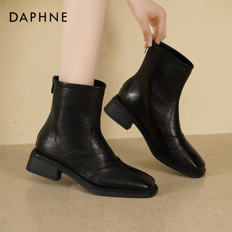 粗跟瘦瘦靴 英伦风黑色靴子女法式 达芙妮高跟短靴女2025新款 爆款