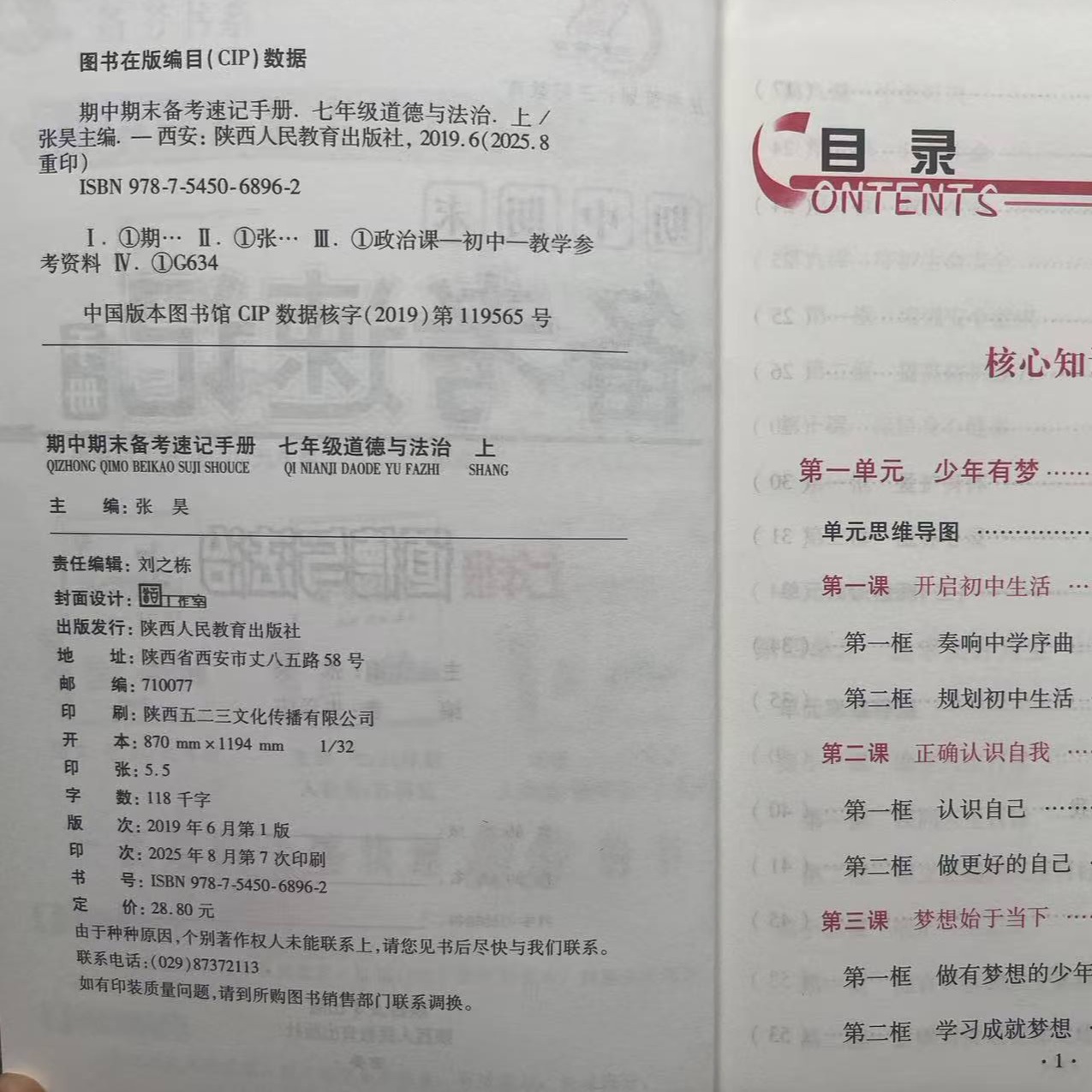 新版 语文道德与法治历史生物地理湘教7七年级上下册初中初一政治历史教辅知识点速查备考复习考试 2025期中期末备考速记手册人教版