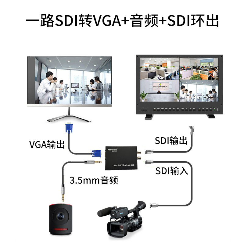 迈拓维矩SV12 高清sdi转vga转换器带3.5mm音频口本地环出音视频同步可级联1080p