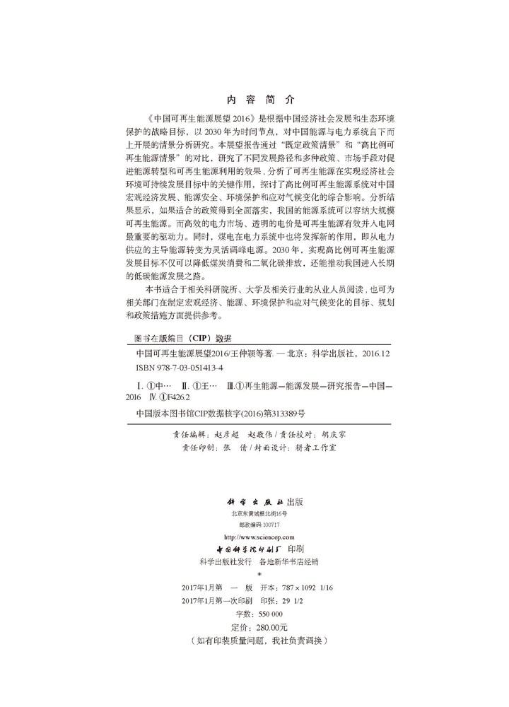 中国可再生能源展望2016科学出版 社
