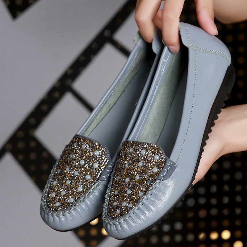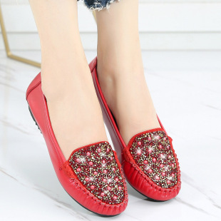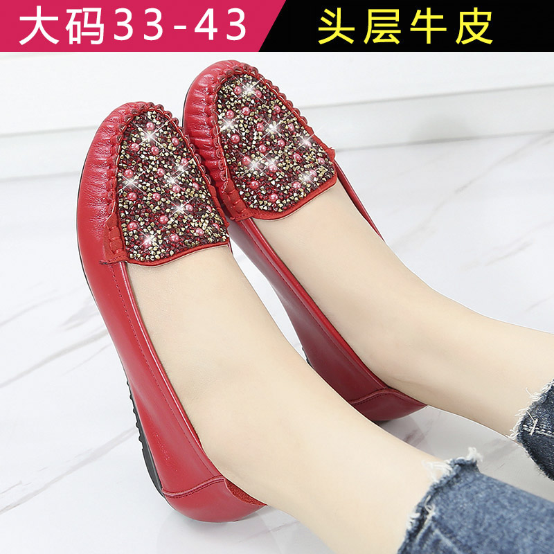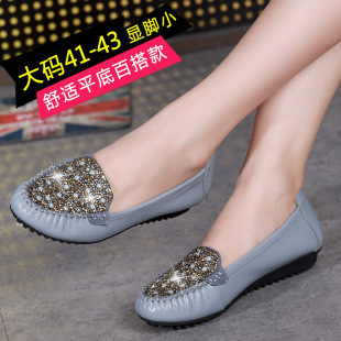 百搭大码 一脚蹬平底真皮软皮单鞋 豆豆鞋 43妈妈鞋 女41 2025春新款