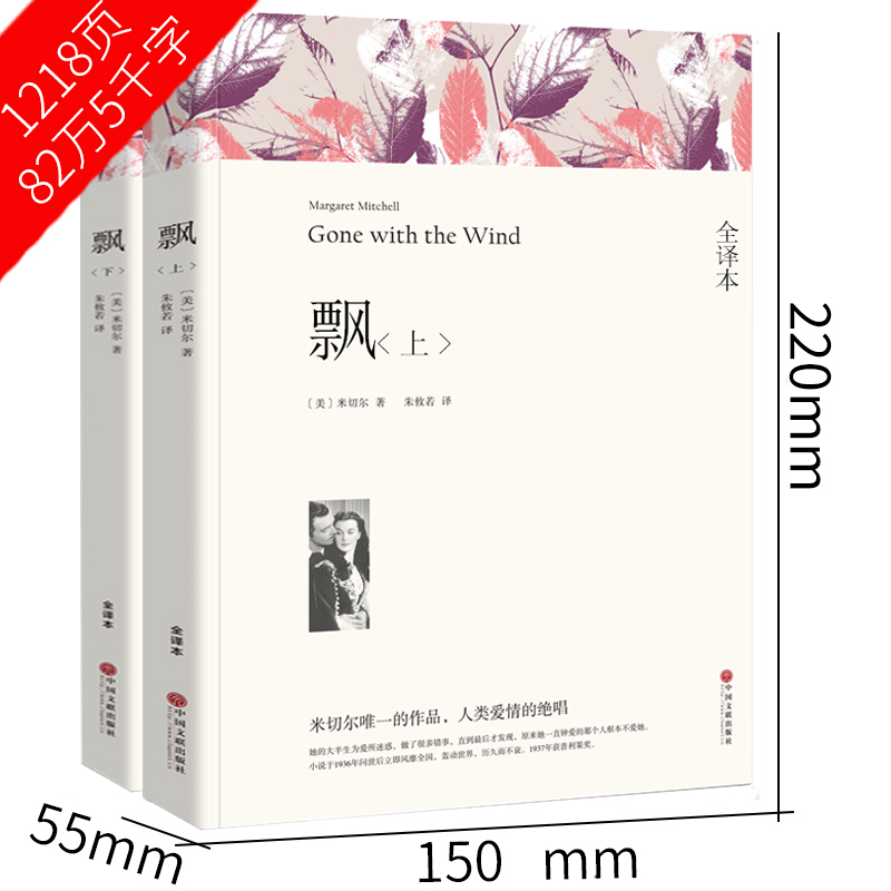 上下两册 乱世佳人 世界十大名著之一原著正版 全译本无删减中学生课外小说文学名著外国经典 飘 包邮 书籍wp 中文无删减共1218页