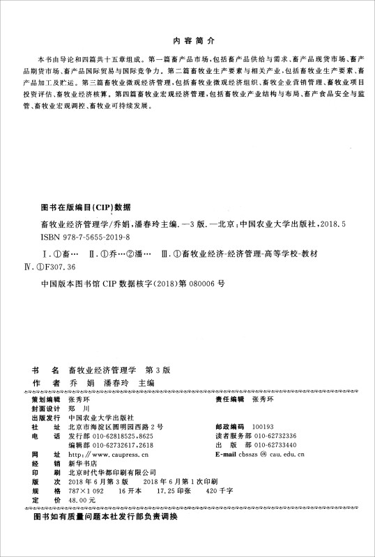 第3版 中国农业大学出版 9787565520198 潘春玲主编 社教材 乔娟 畜牧业经济管理学